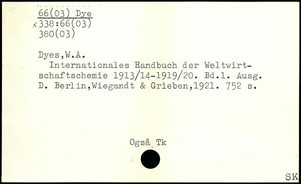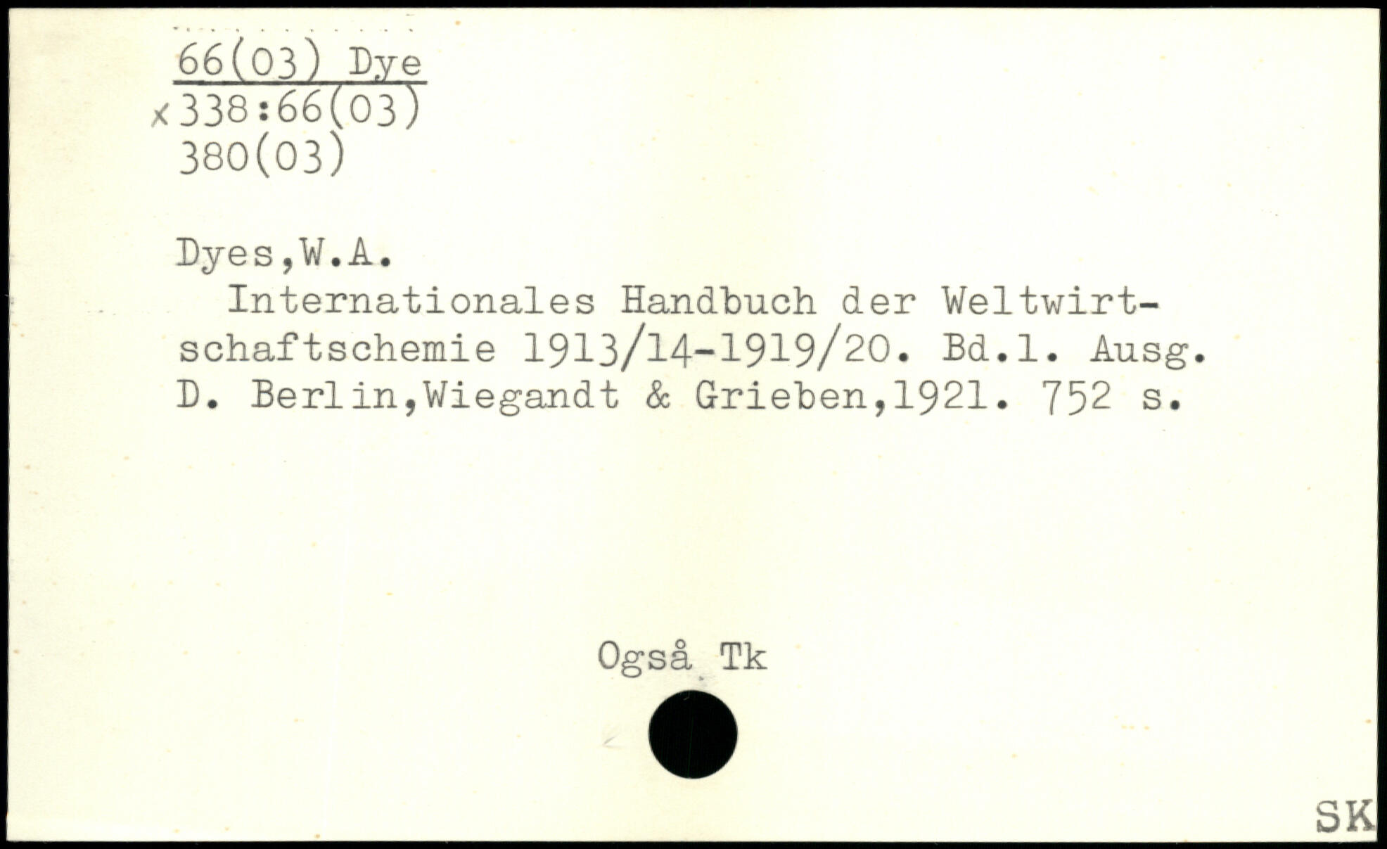 Internationales Handtuch der Weltwirtschaftschemie 1913/14-1919/20. Bd.l. Ausg. D.