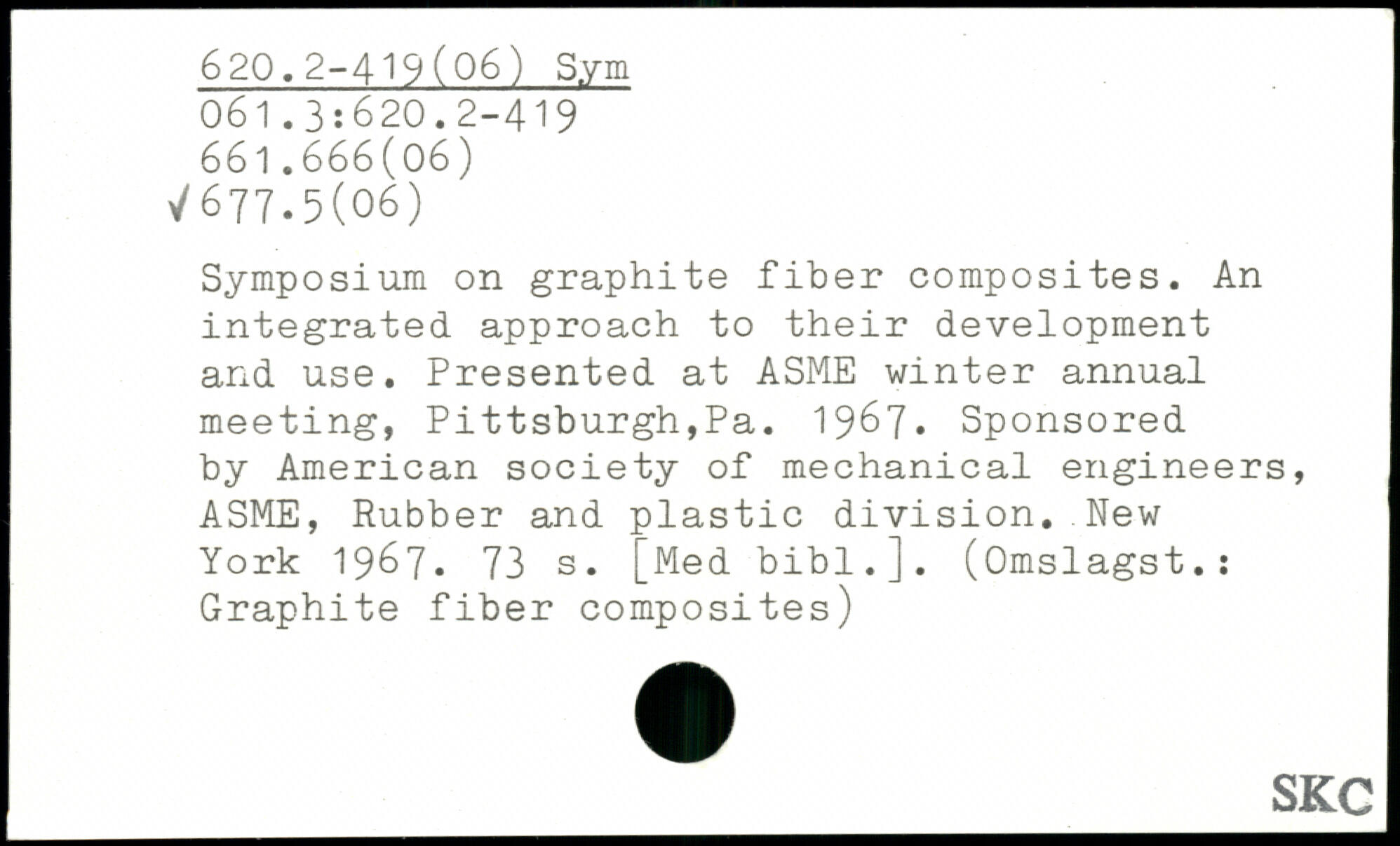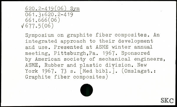 Symposium on graphite fiber composites. An integrated approach to their development and use. Presented at ASME winter annual meeting, Pittsburgh,Pa. 1967. Sponsored by American society of mechanical engineers, ASME, Rubber and plastic division.