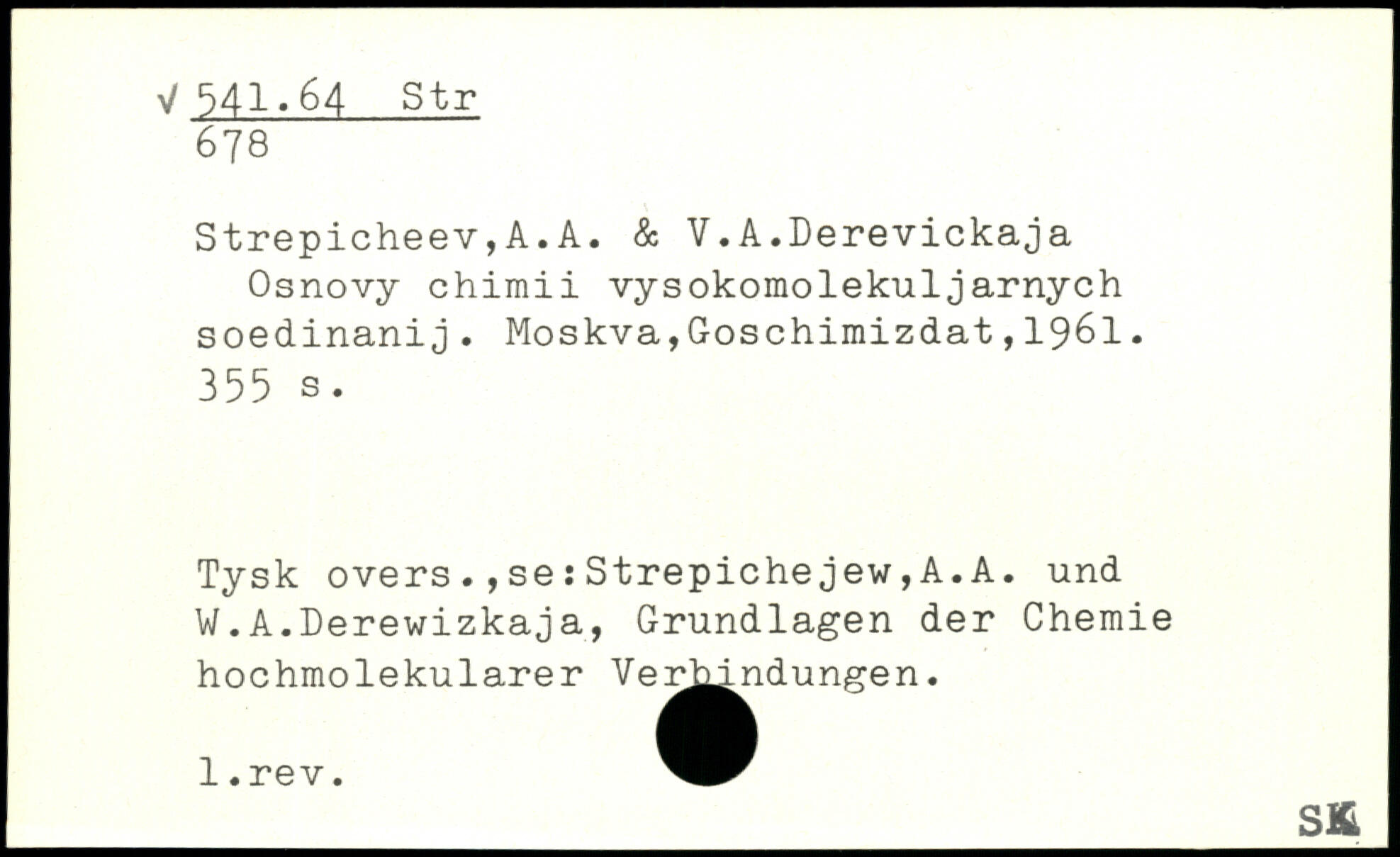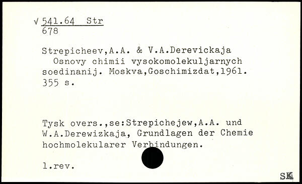 Strepicheev,A.A. & V.A.Derevickaja Osnovy chimii vysokomolekuljarnych soedinanij.