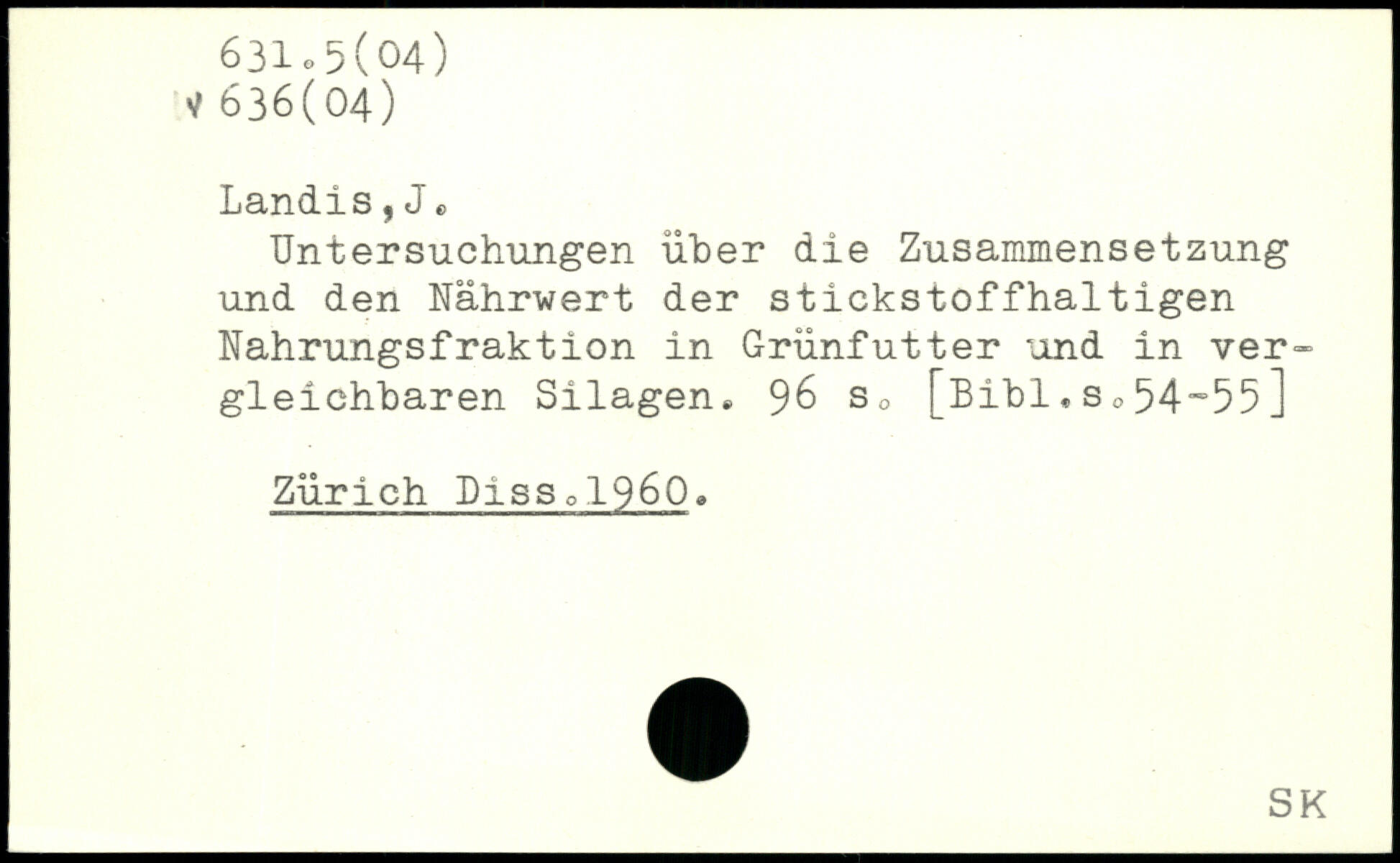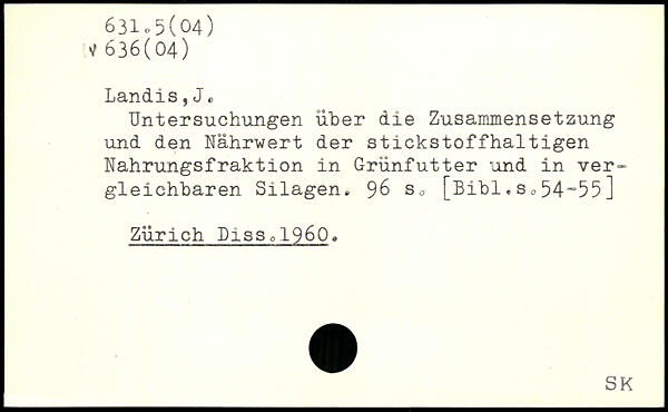 Untersuchungen über die Zusammensetzung und den Nährwert der stickstoffhaltigen Nahrungsfraktion in Grünfutter und in vergleichbaren Silagen