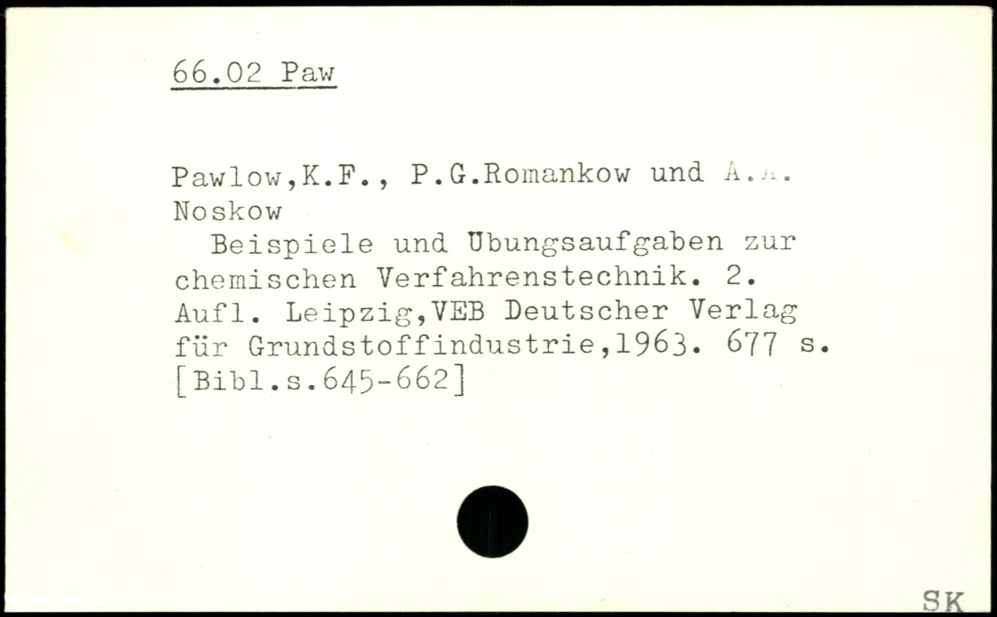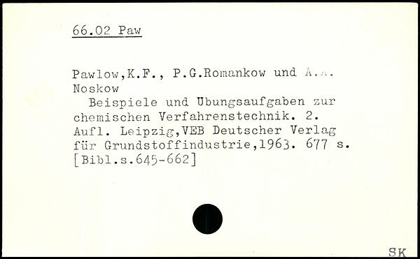Pawlow,K.F. , P.G.Roinankow und A.u. Noskow Beispiele und Übungsaufgaben zur chemischen Verfahrenstechnik.