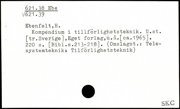 . Ebenfeit,H. Kompéndium i tillförlighetsteknik. U.st. [tr.Sverige],Eget forlag,u.à.[ca.1965].