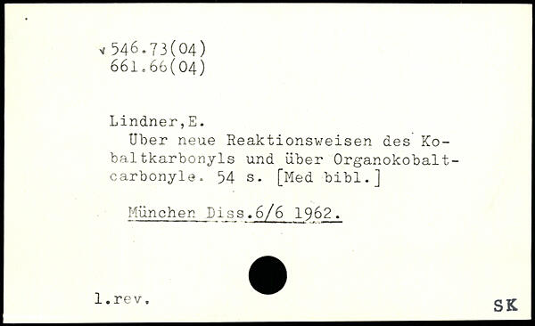 Uber neue Reaktionsweisen des Ko-baltkarbonyls und über Organokobalt-carbonyle.