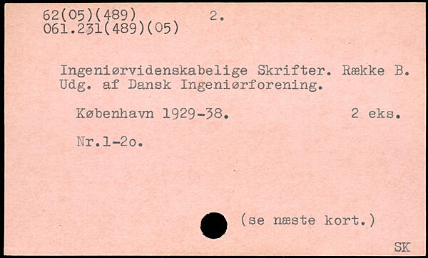 Ingeniørvidenskabelige Skrifter. Række B. Udg. af Dansk Ingeniørforening.
