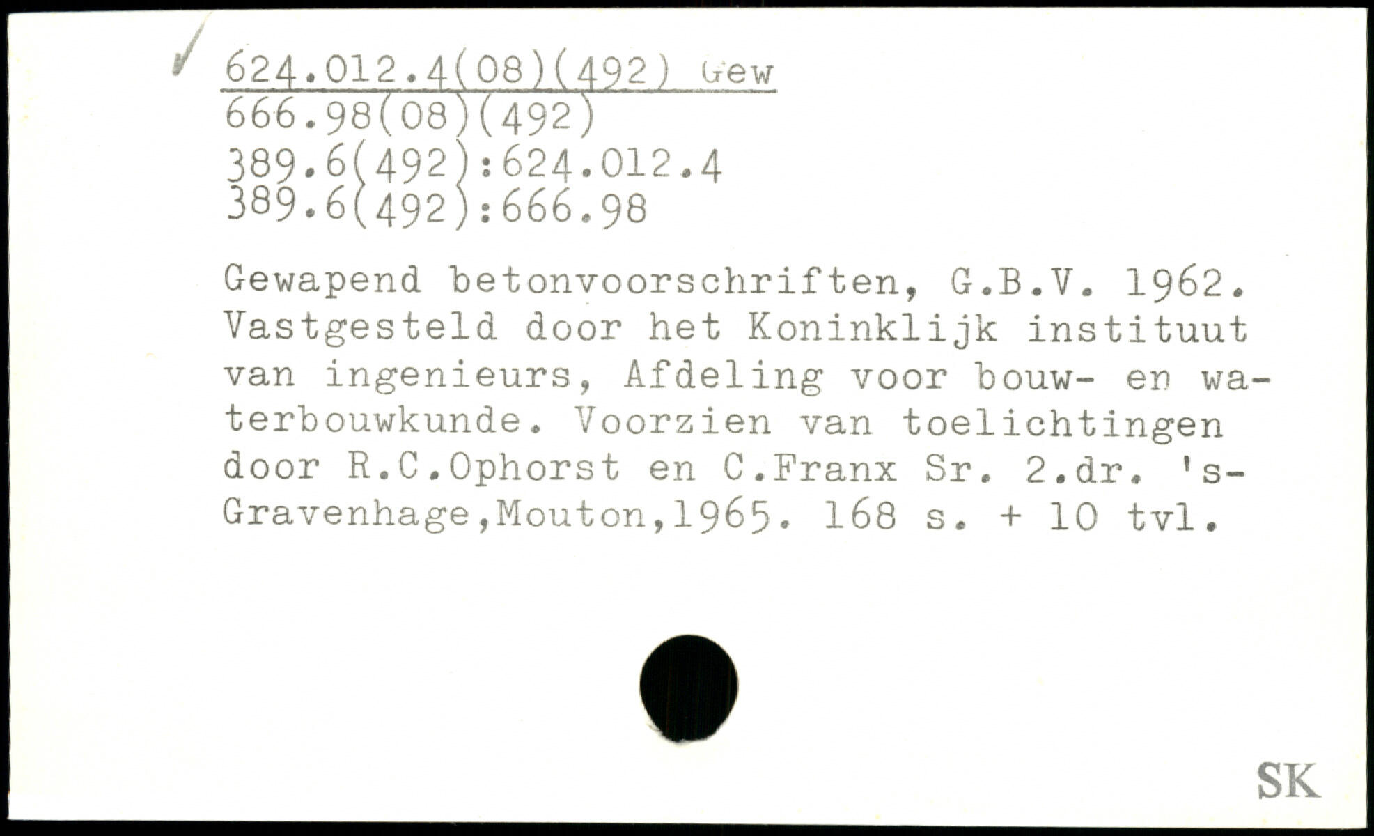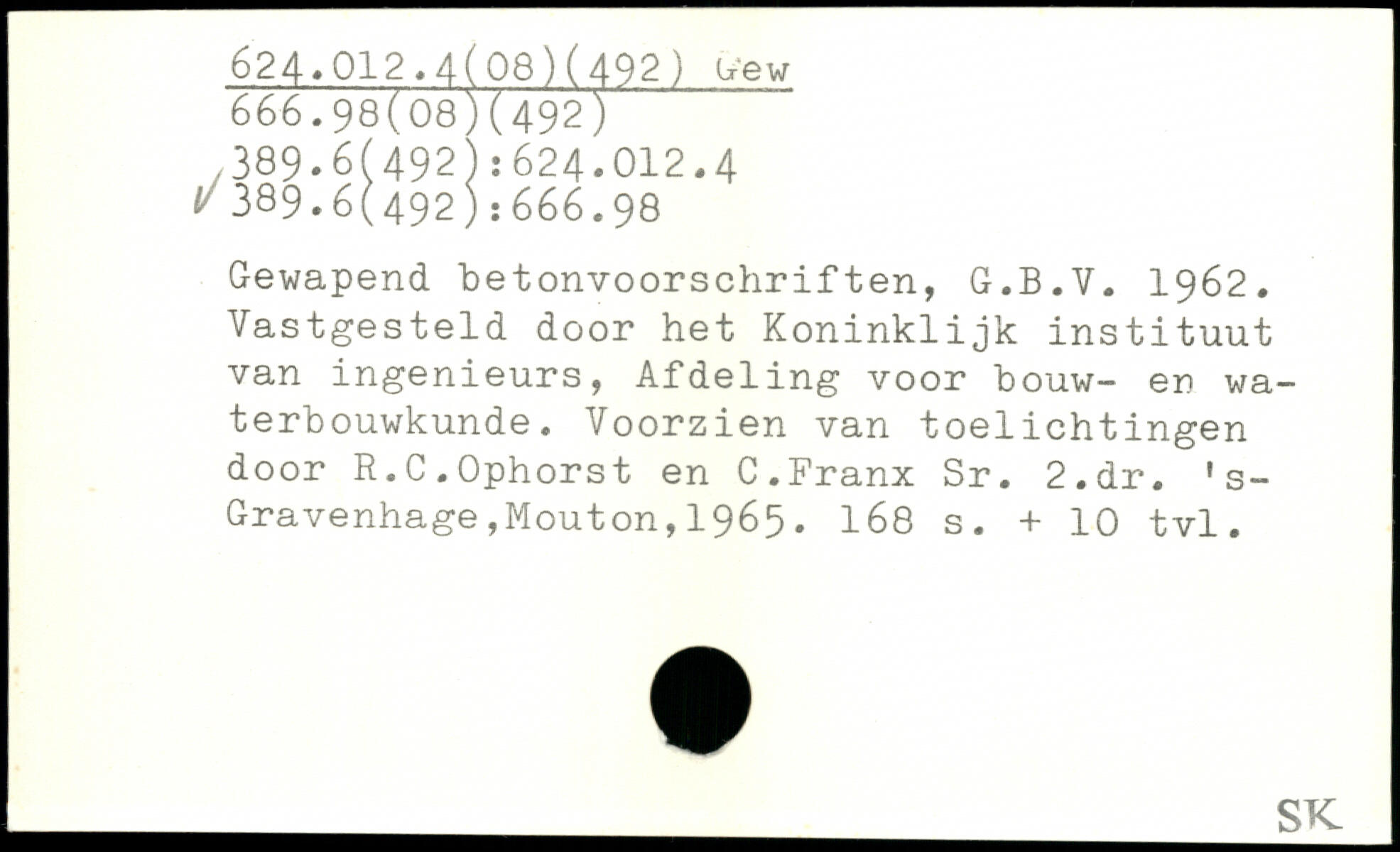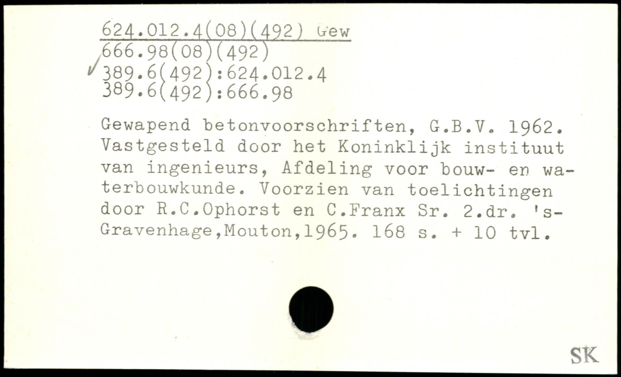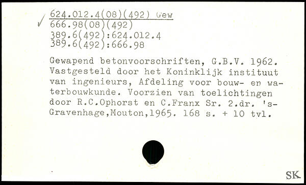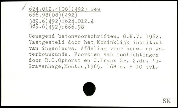 Gewapend betonvoorschriften, G.B.V. 1962. Vastgesteld door het Koninklijk instituut van ingénieurs, Afdeling voor bouw- en wa-terbouwkunde. Voorzien van toelichtingen door R.C.Ophorst en C.Franx Sr. 2.dr. 's-