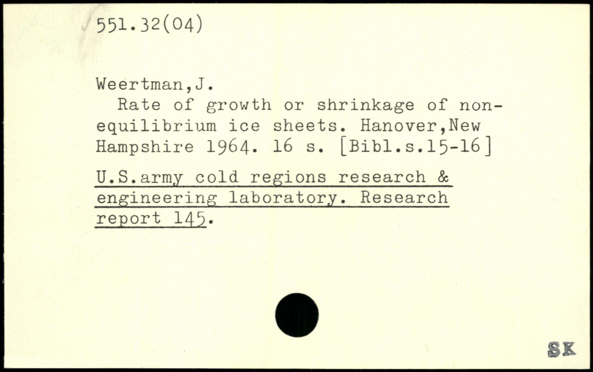 Rate of growth or shrinkage of non-equilibrium ice sheets. Hanover,New Hampshire 1964.