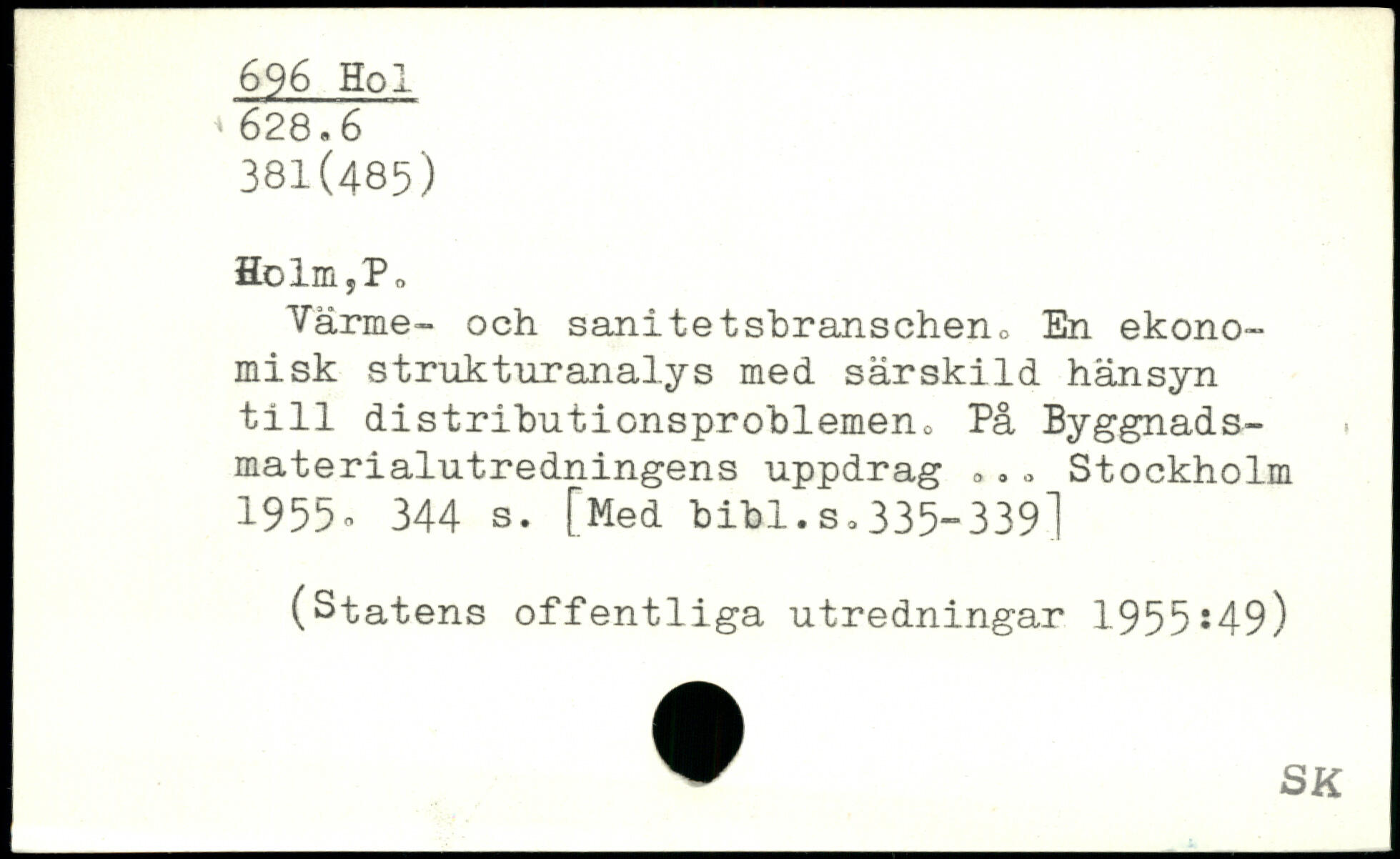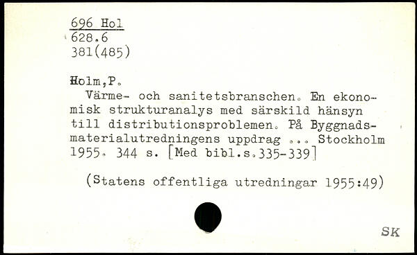 Värme- och sanitetsbranscherio En ekonomisk strukturanalys med särskild hänsyn till distributicnsproblemen. På Byggnadsmaterialutredningens uppdrag. o