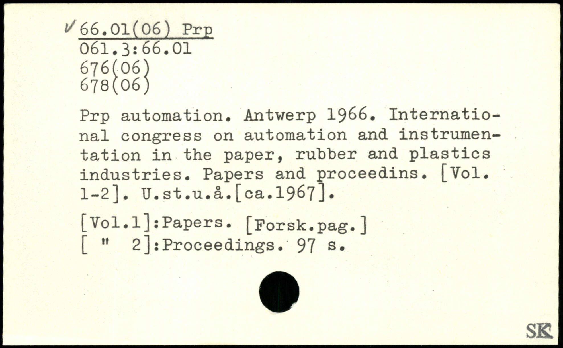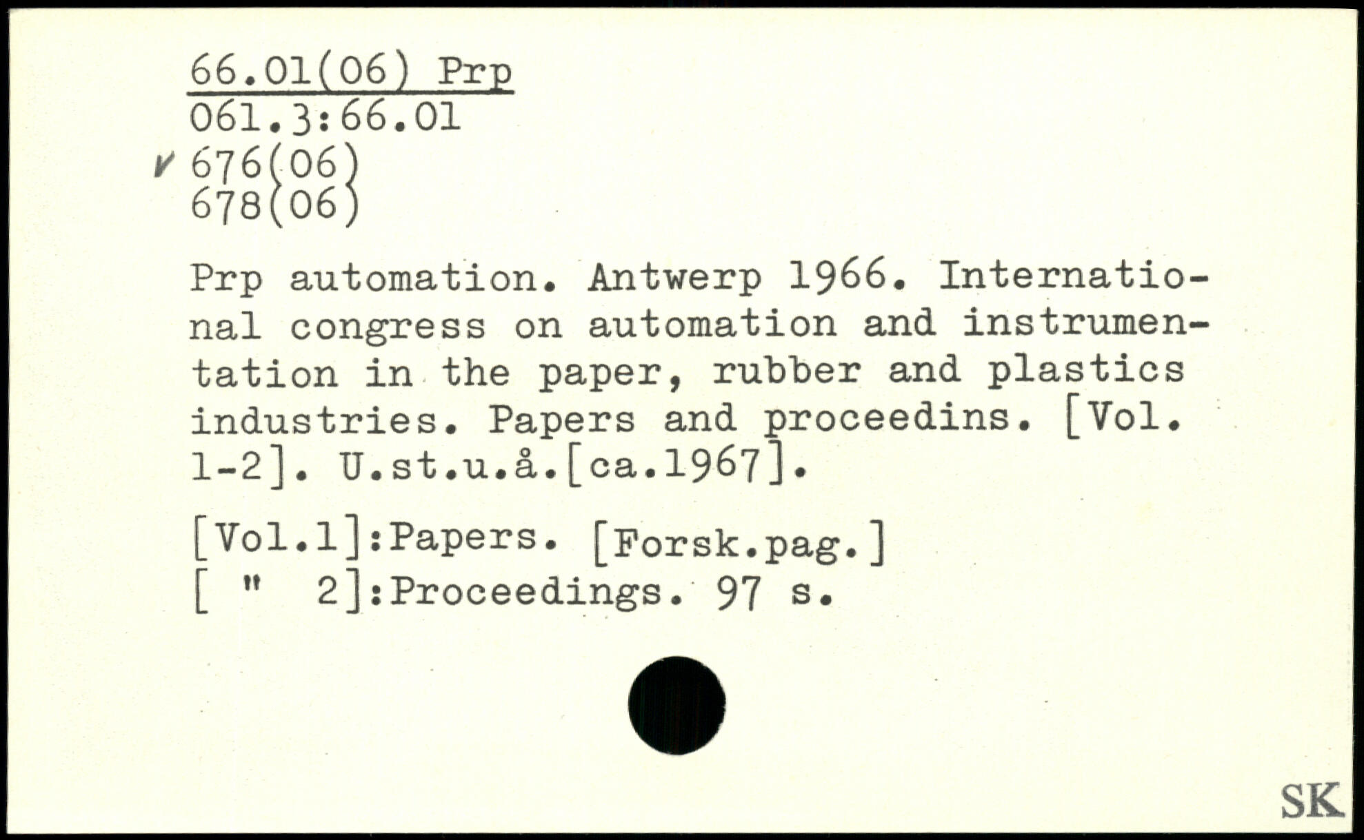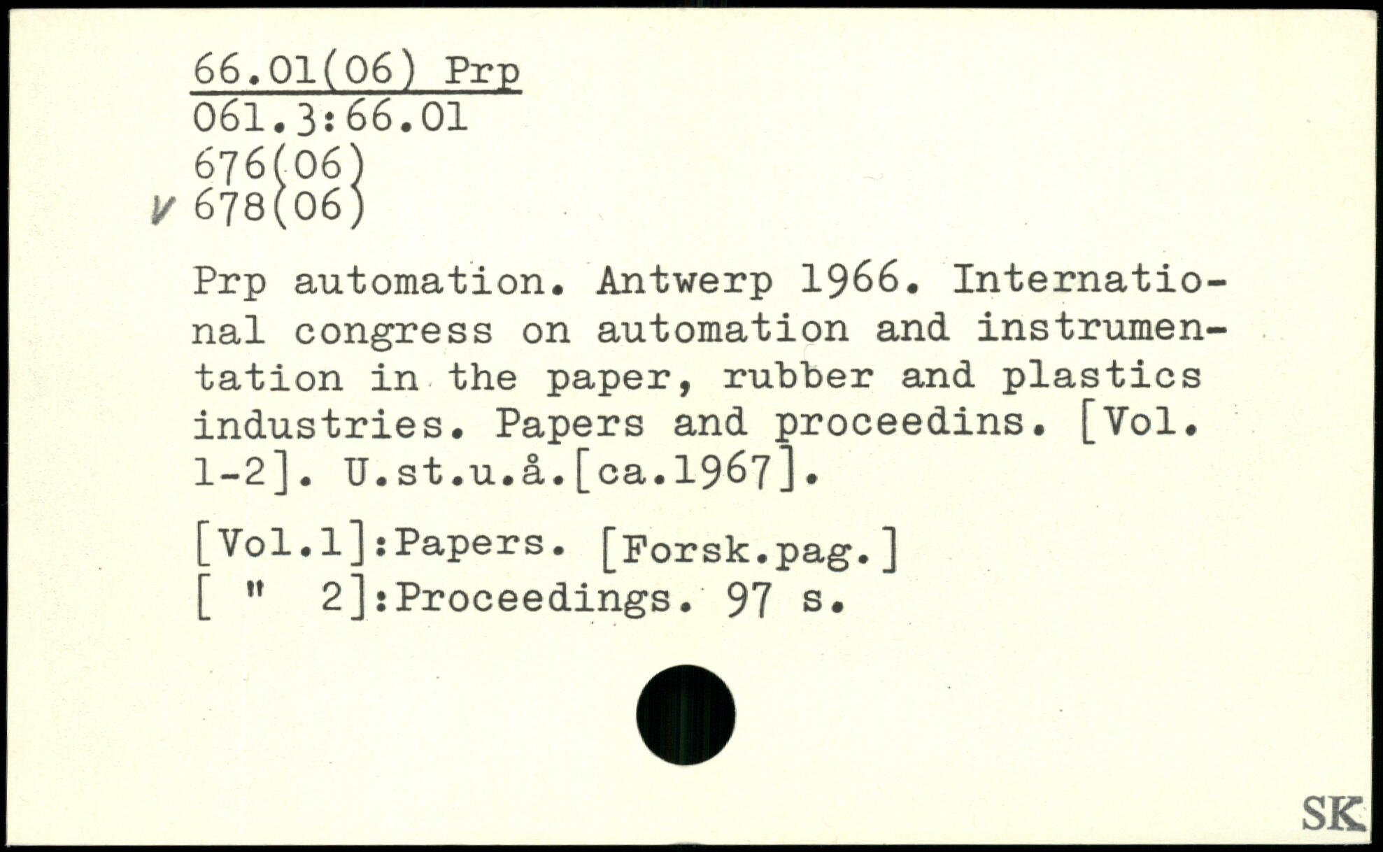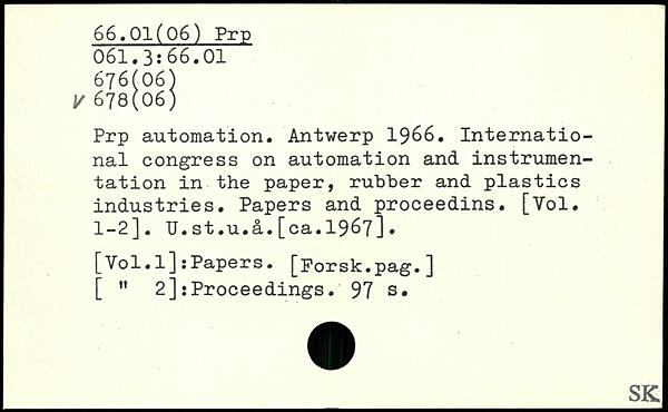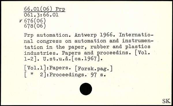 Prp automation. Antwerp 1966. International congress on automation and instrumentation in the paper, rubber and plastics industries. Papers and proceedins. [Vol. 1-2]. U.st.u.â.[ca.1967].