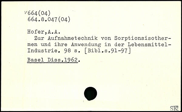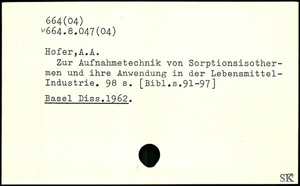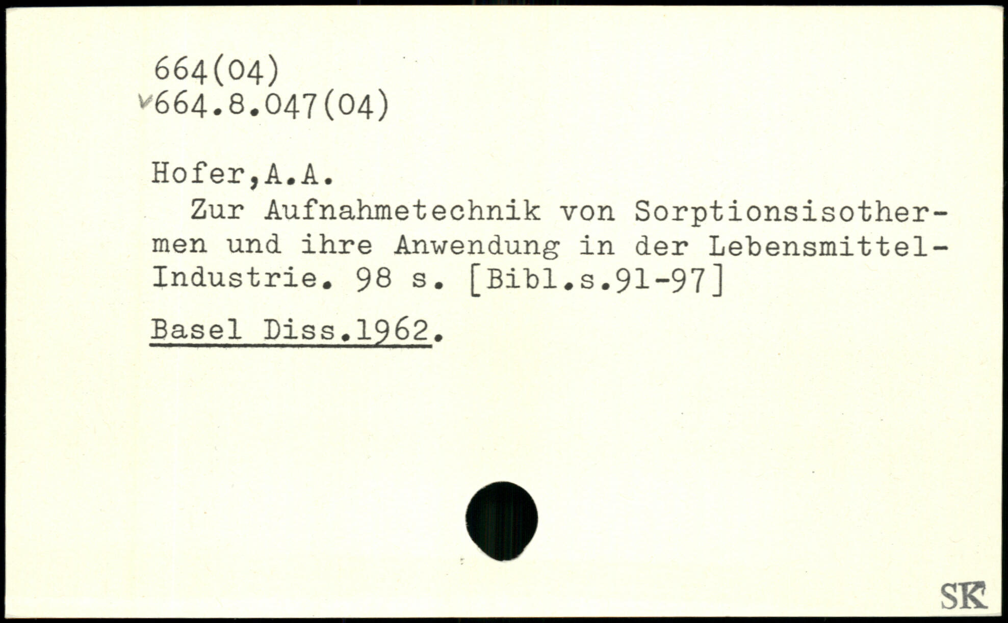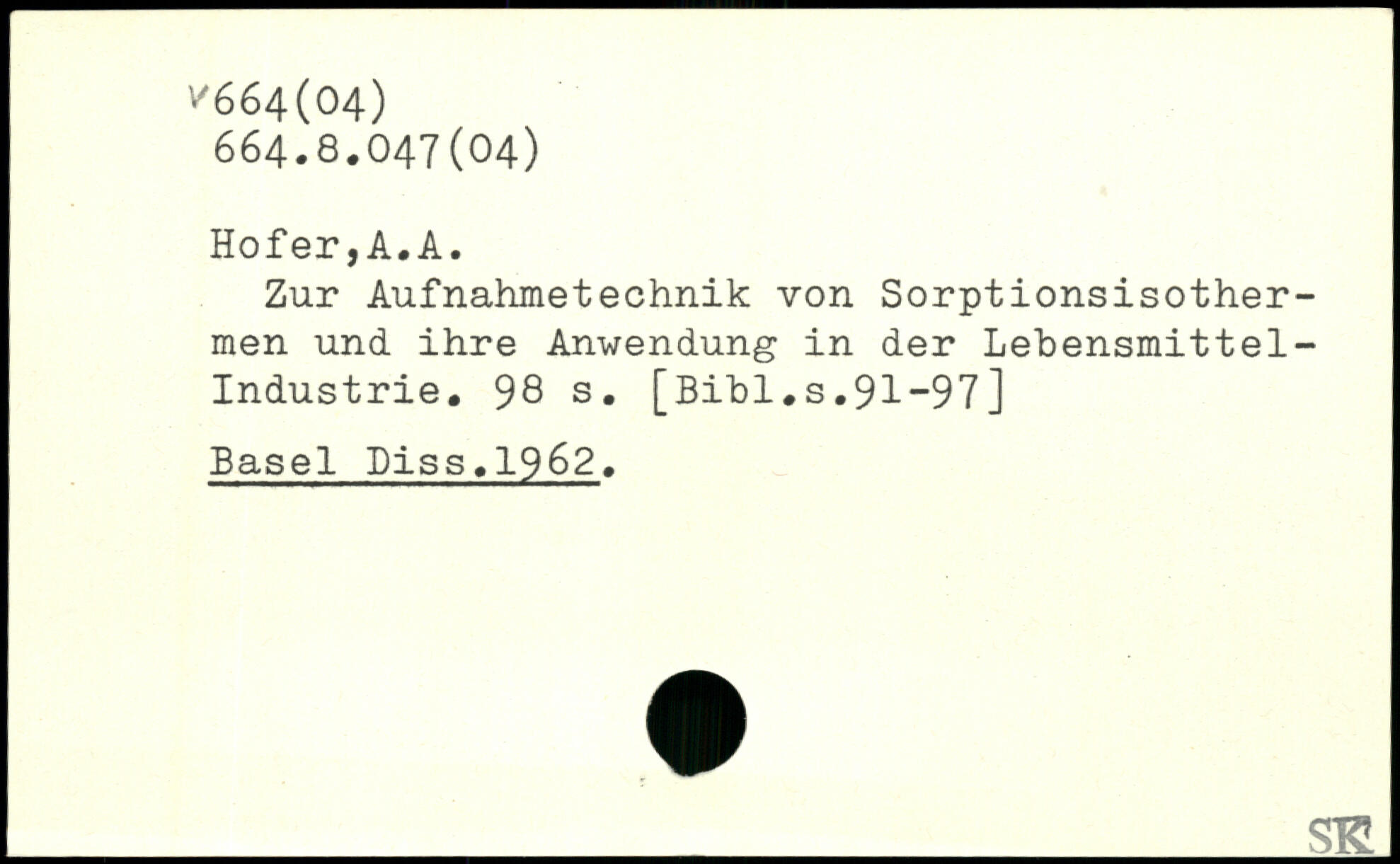 Zur Aufnahmetechnik von Sorptionsisothermen und ihre Anwendung in der Lebensmittelindustrie.