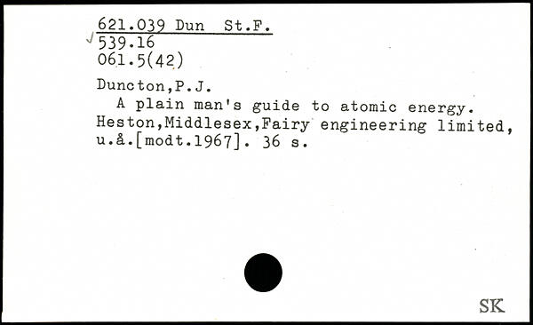 A plain man’s guide to atomic energy. Heston,Middlesex,Fairy engineering limited, u.&.[modt.1967].