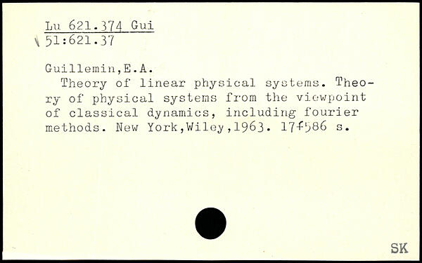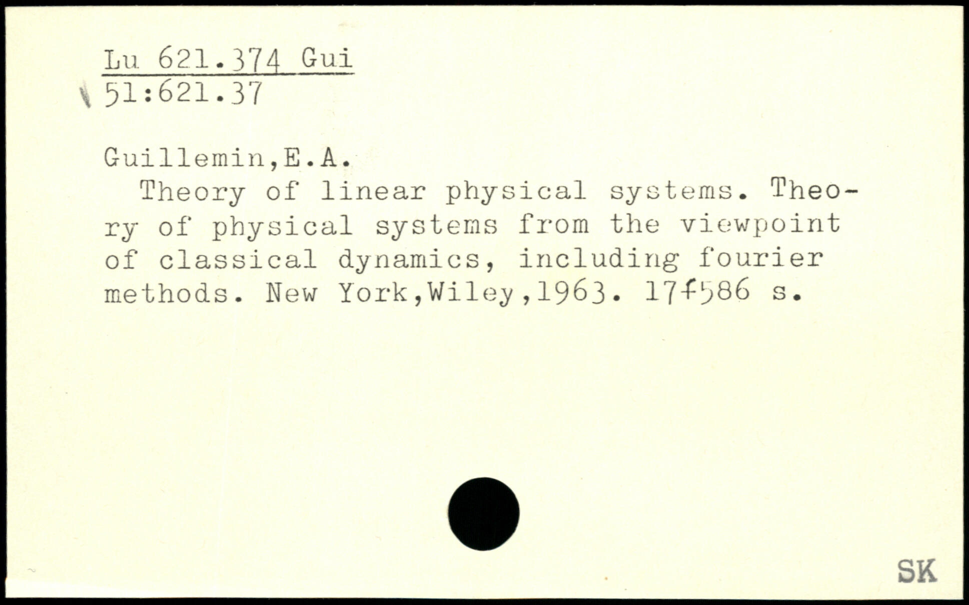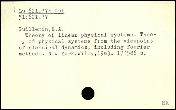 Theory of linear physical systems. Theory of physical systems from the viewpoint of classical dynamics, including fourier methods.