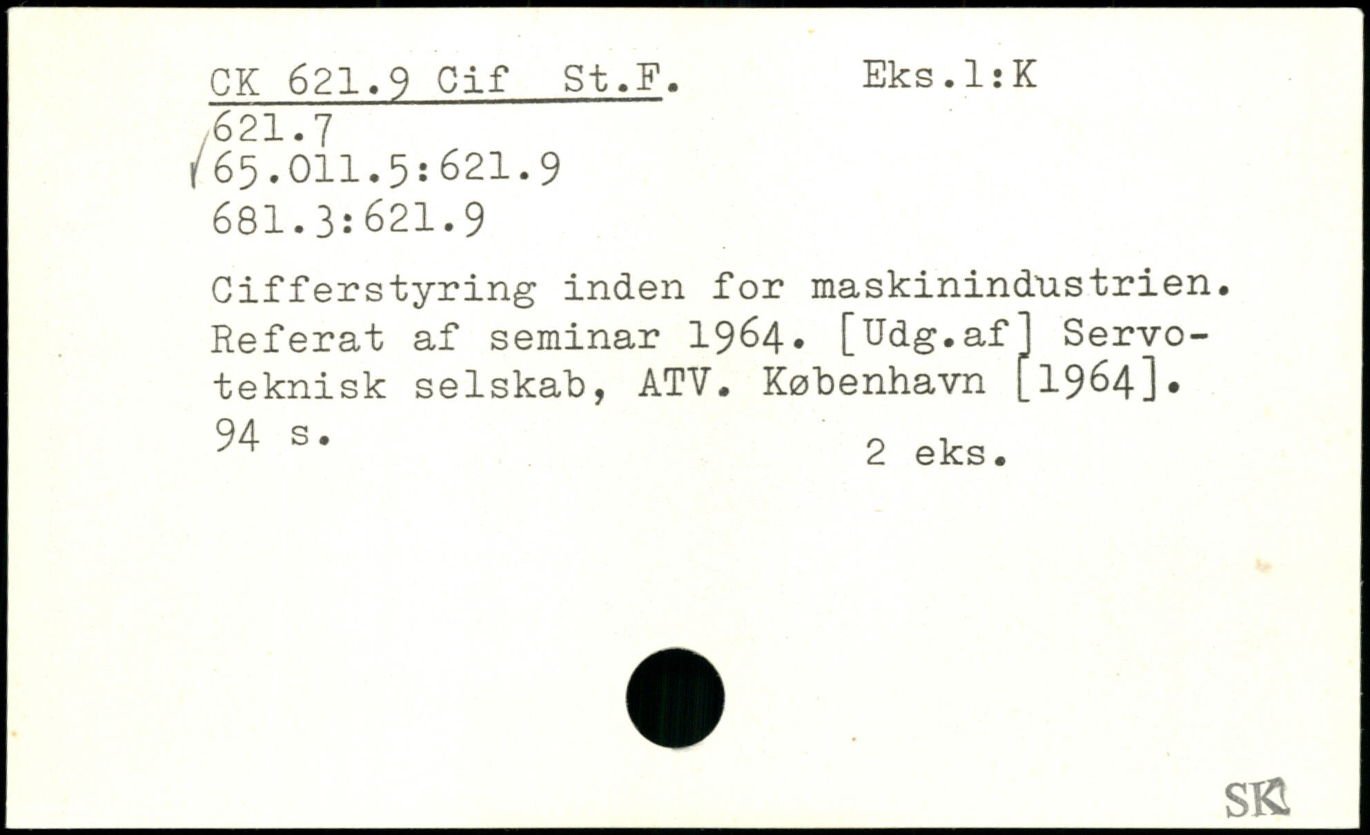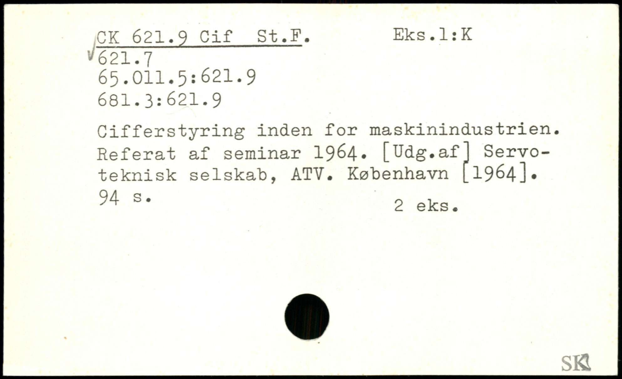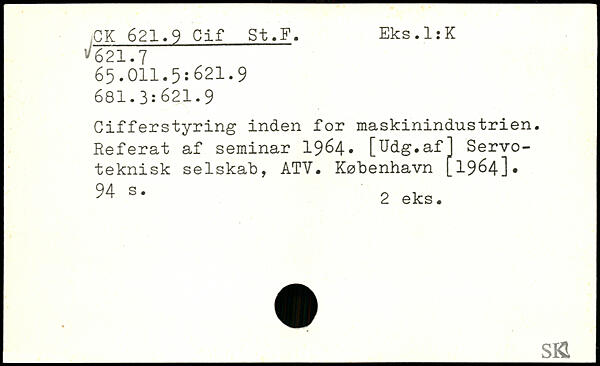Cifferstyring inden for maskinindustrien. Referat af seminar 1964.