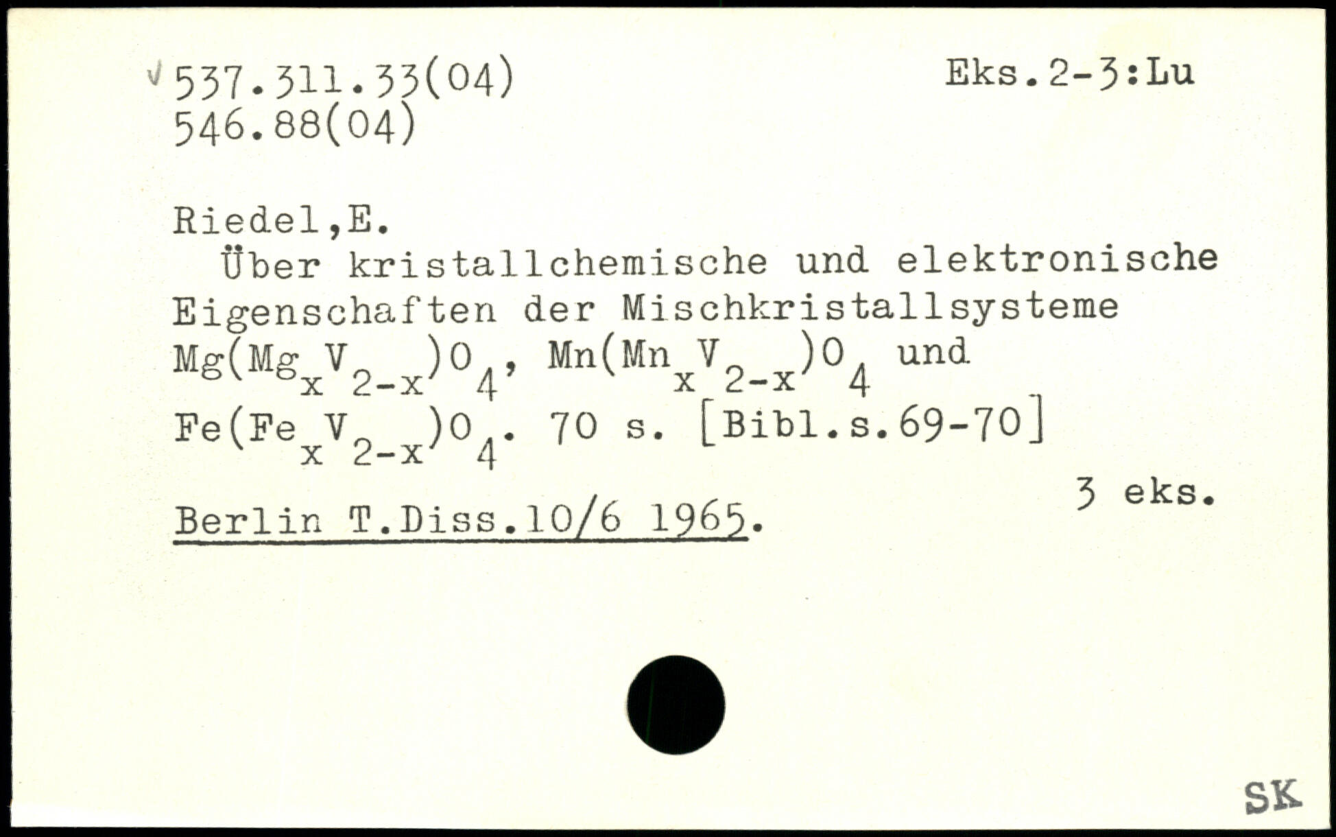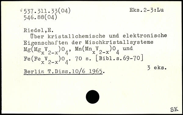 Über kristallchemische und elektronische Eigenschaften der Mischkristallsysteme Mg(MgxV2_x)04, Mn(MnxV2_x)04 und Fe(Fe V, )0,.