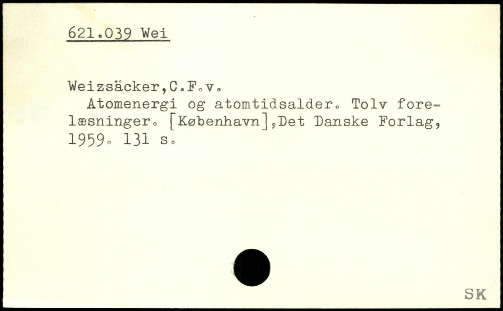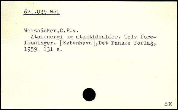 Atomenergi og atomtidsalder, Tolv forelæsninger. [København],Det Danske Forlag, 1959.