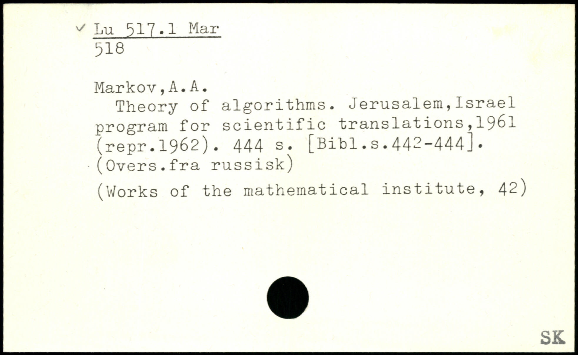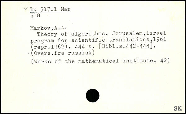 Theory of algorithms. Jerusalem,Israel program for scientific translations,1961 (repr. 1962).