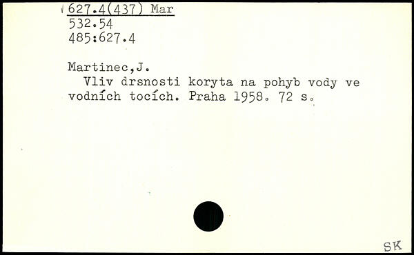 Vliv drsnosti koryta na pohyb vody ve vodnich tocich.