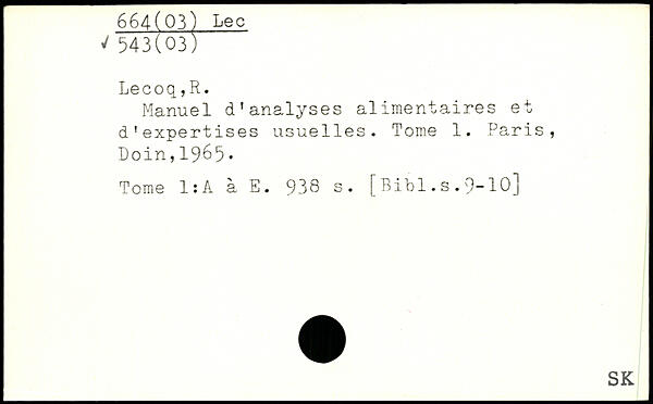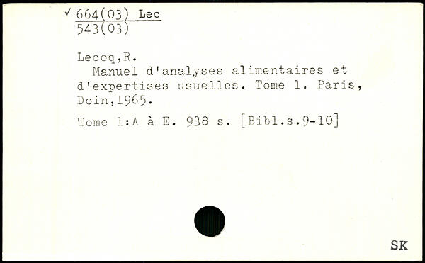 Manuel d’analyses alimentaires et d'expertises usuelles. Tome 1.
