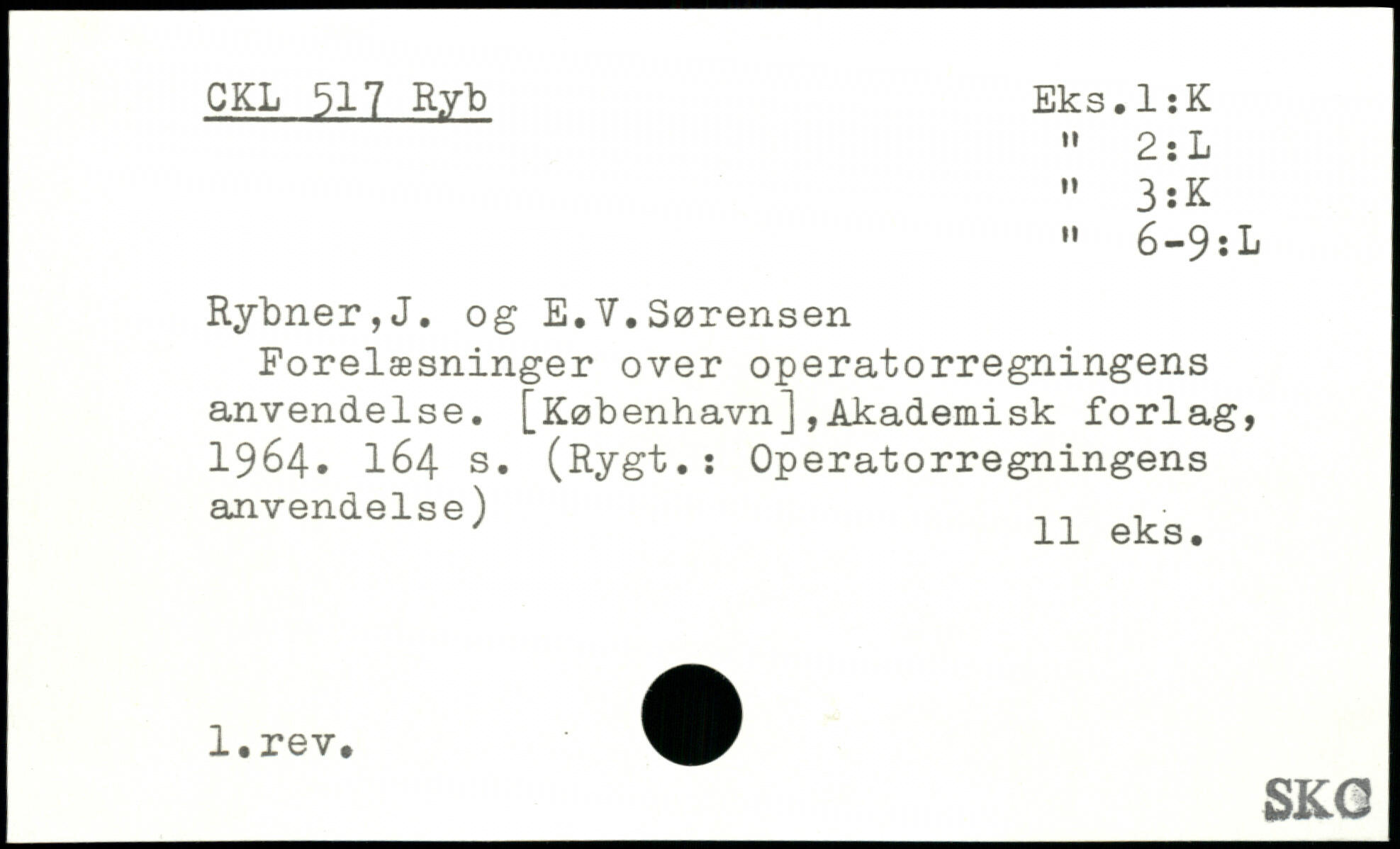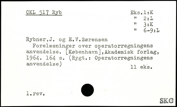 Forelæsninger over operatorregningens anvendelse. [København],Akademisk forlag, 1964. I