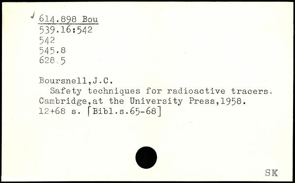 Safety techniques for radioactive tracers, Cambridge,at the University Press,1958.