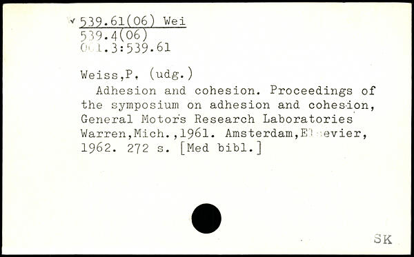 Adhesion and cohesion. Proceedings of the symposium on adhesion and cohesion, General