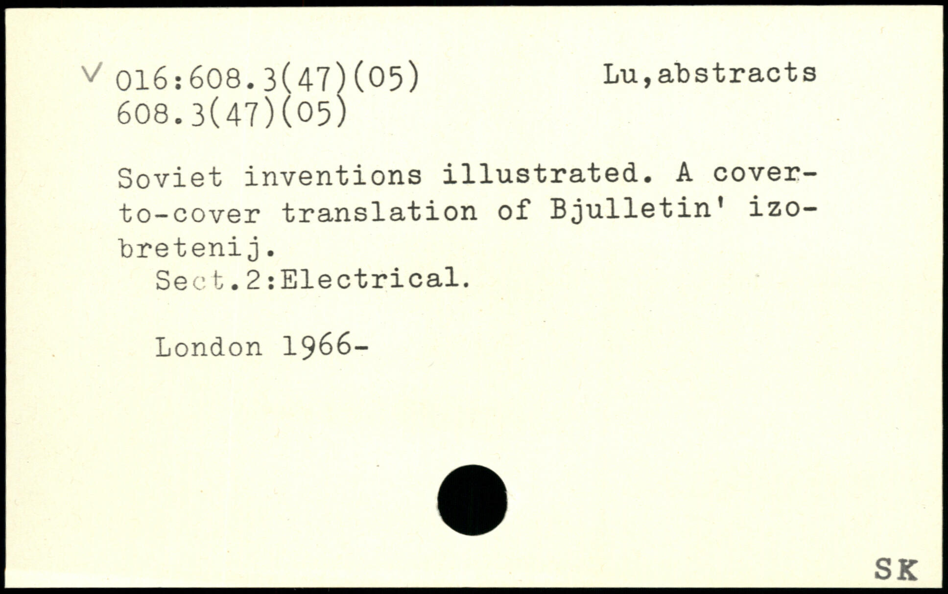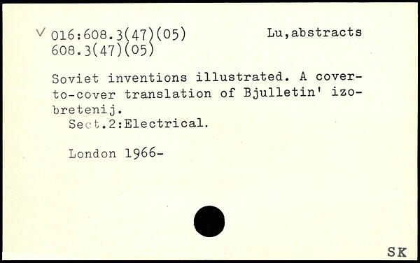 Soviet inventions illustrated. A cover-to-cover translation of Bjulletin’ izo- bretenij. Sect.2 :Electrical.