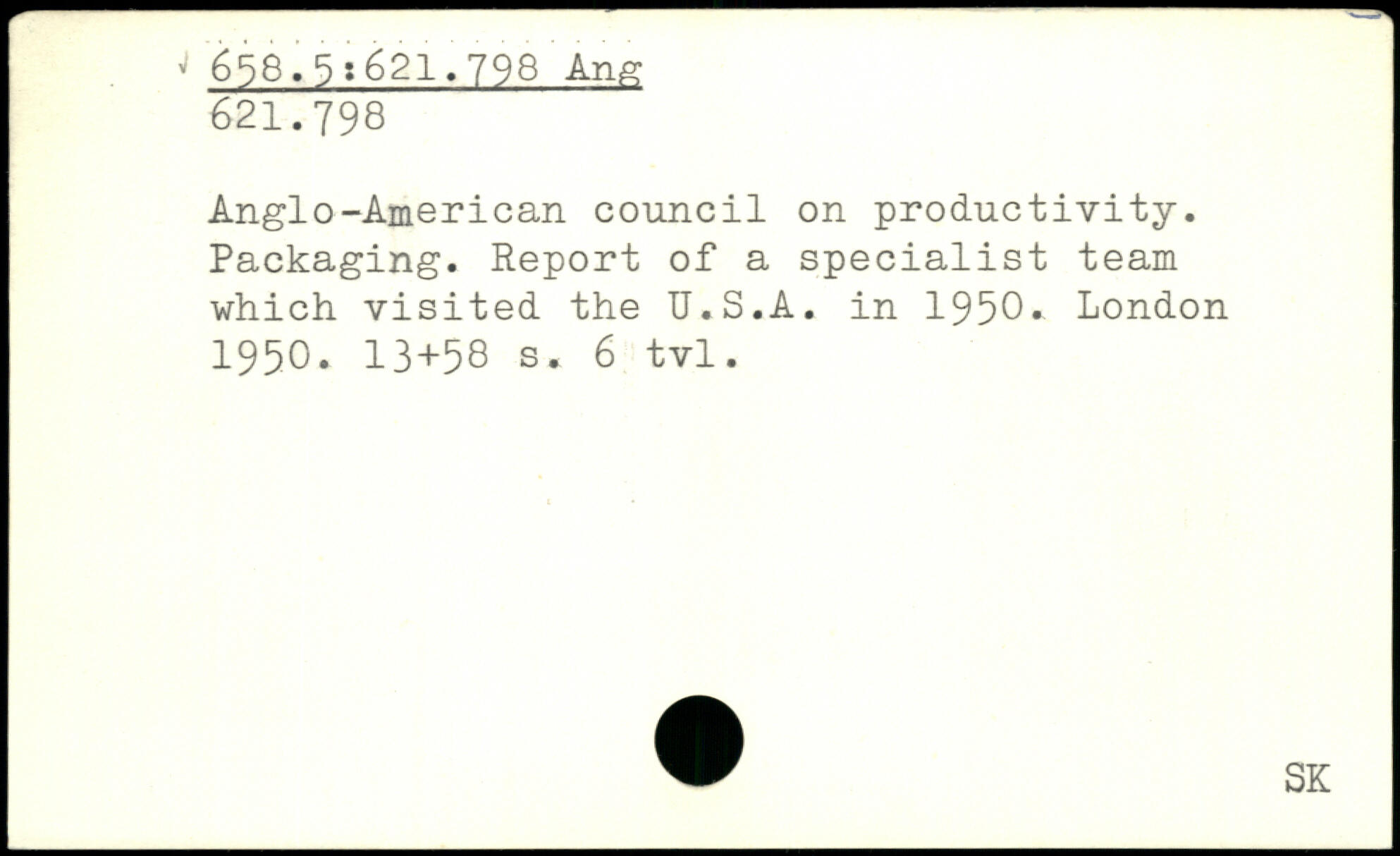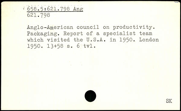 Anglo-American council on productivity. Packaging. Report of a specialist team which visited the U.S.A. in 1950.