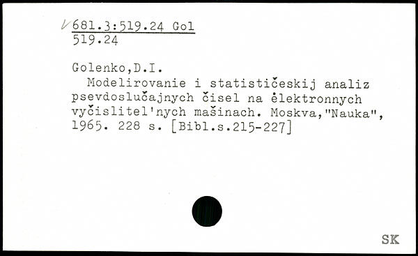 Modelirovanie i statisticeskij analiz psevdoslucajnych cisel na êlektronnych vycislitel’nych masinach. Moskva,"Nauka", 1965.