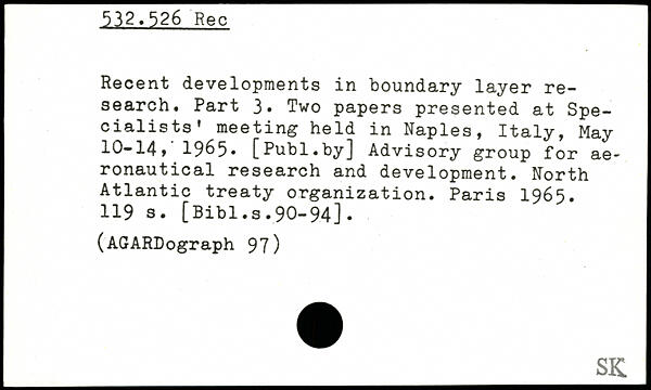 Recent developments in boundary layer research. Part 3. Two papers presented at Specialists' meeting held in Naples, Italy, May 10-14,’ 1965.