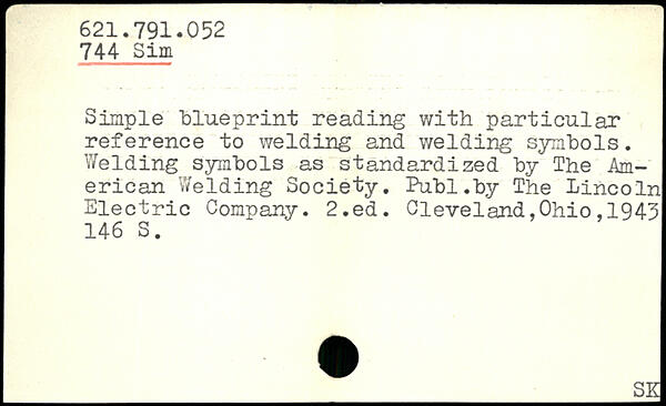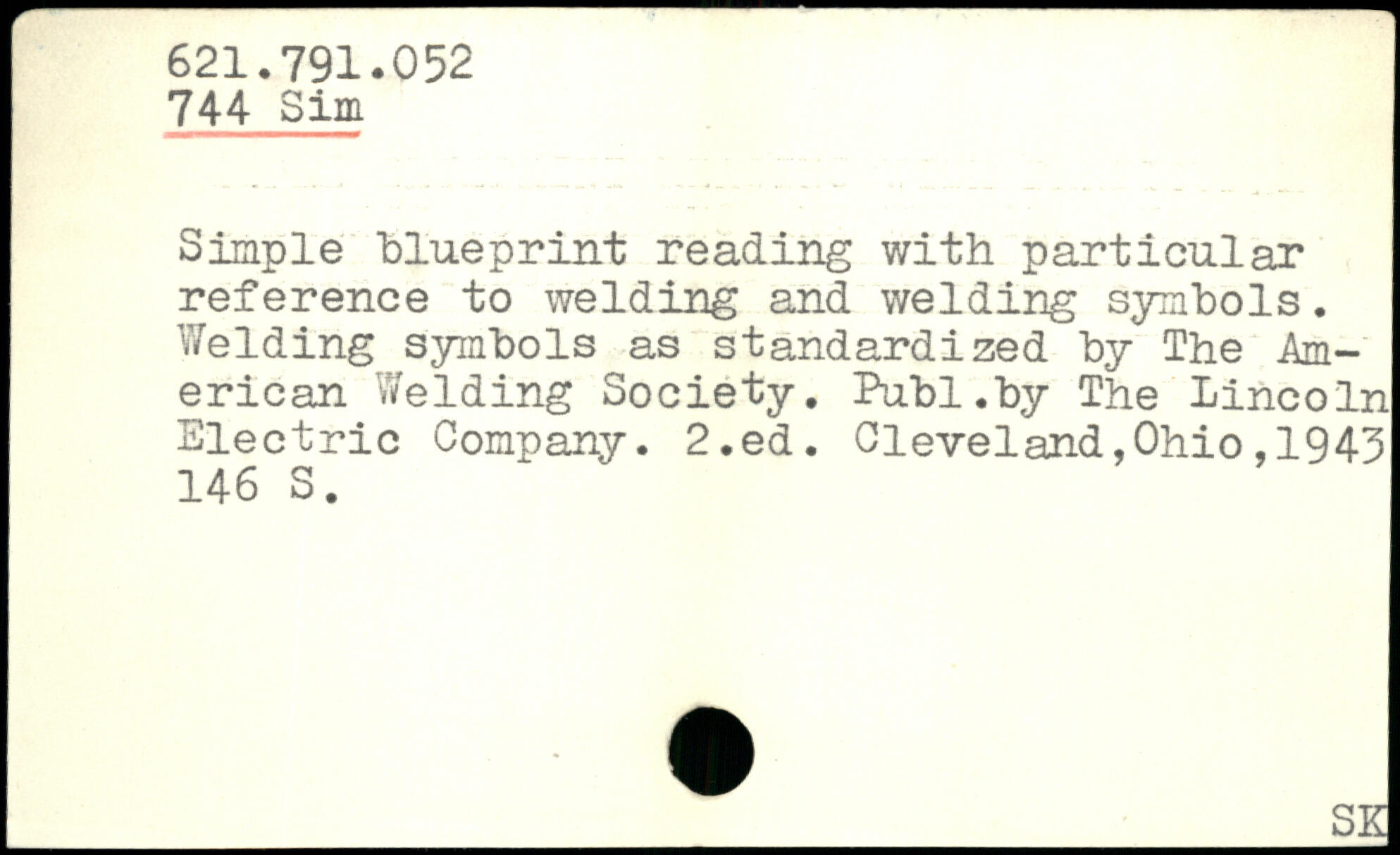 Simple blueprint reading with particular reference to welding and welding symbols. Welding symbols as standardized by The American Welding Society.