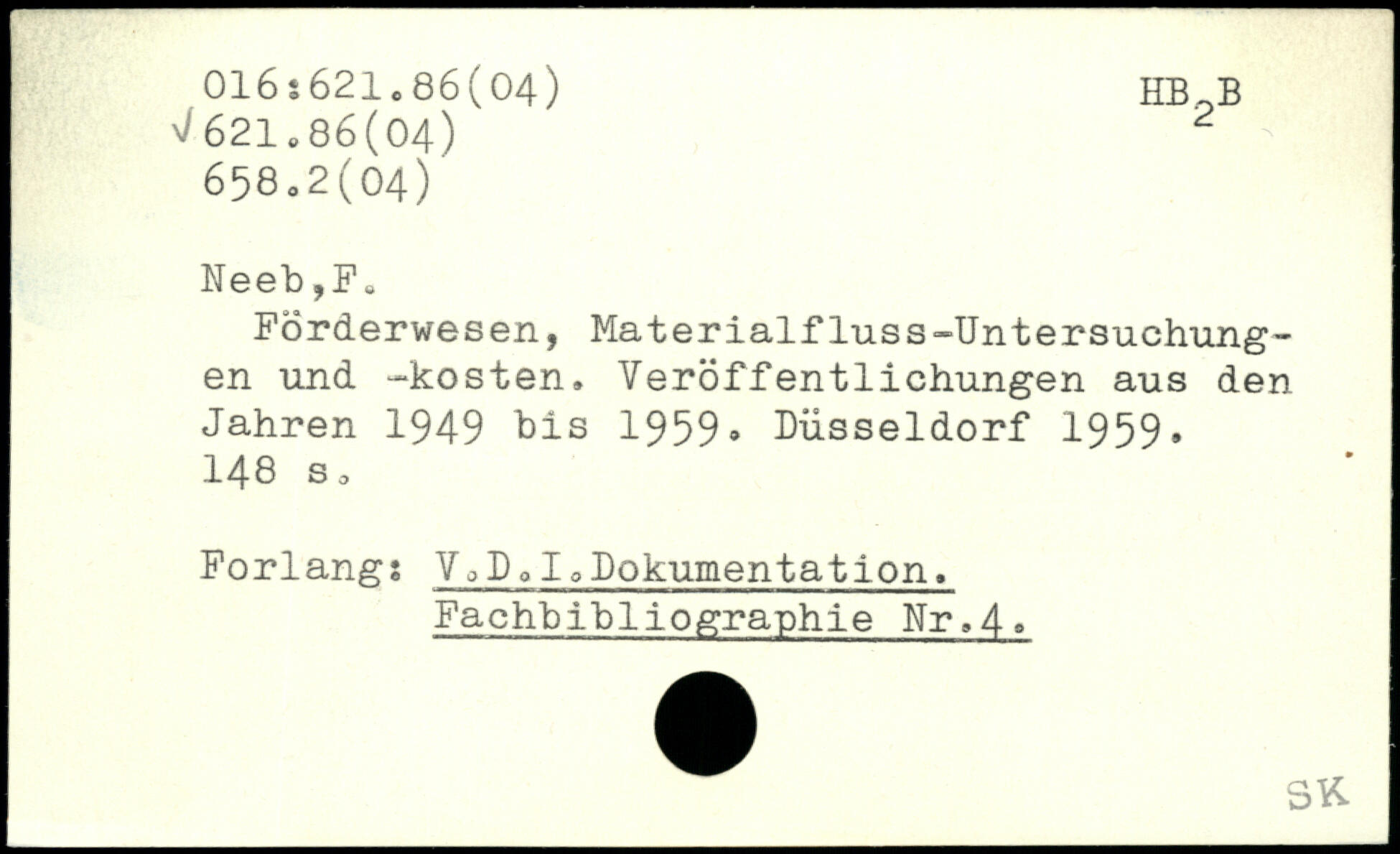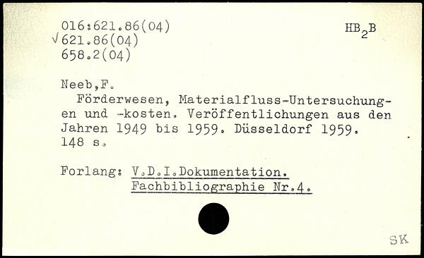 Förderwesen, Materialfluss,Untersuchungen und ,kosten. Veröffentlichungen aus den Jahren 1949 bis 1959, Düsseldorf 1959