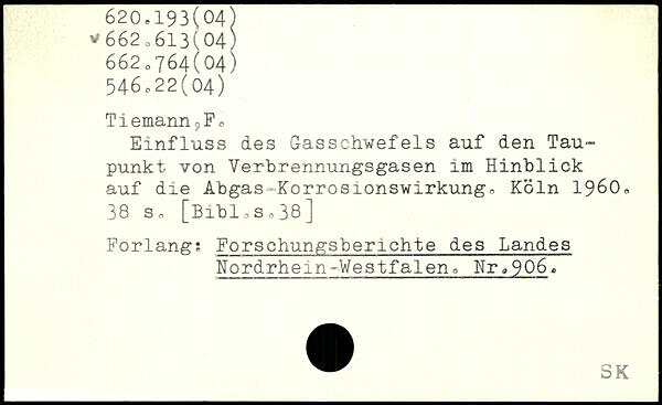 Einfluss des Gasschwefels auf den Taupunkt von Verbrennungsgasen im Hinblick auf die Abgas=Korrosionswirkung