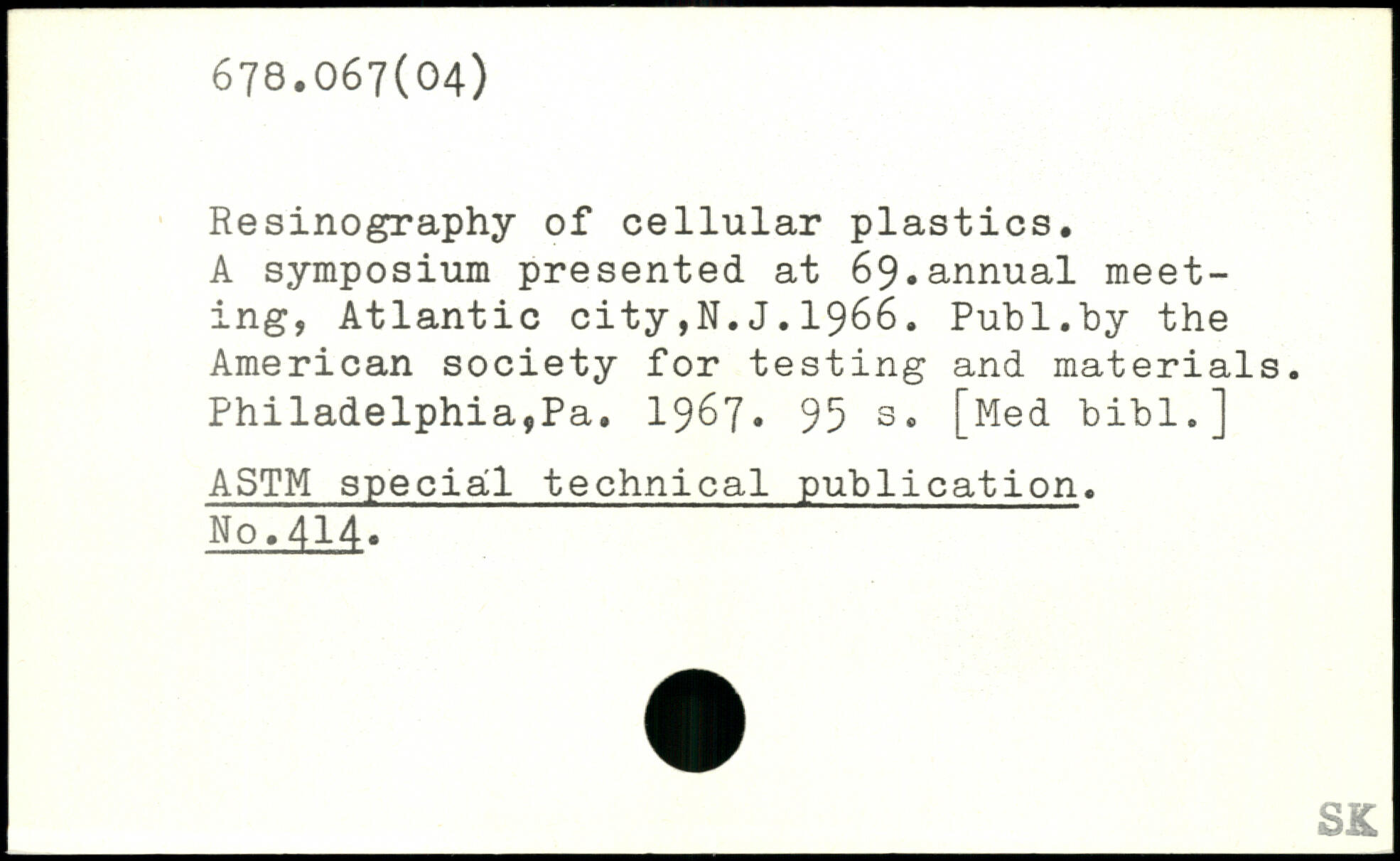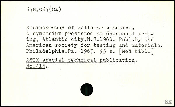 Resinography of cellular plastics. A symposium presented at 69.annual meeting, Atlantic city,N.J.1966.
