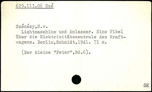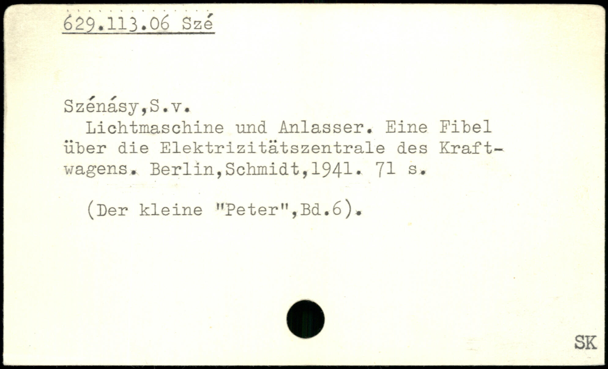 Lichtmaschine und Anlasser. Eine Fibel über die Elektrizitätszentrale des Kraftwagens. Berlin,Schmidt, 194-1.