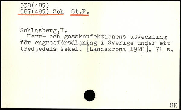 Herr- och gosskonfektionens utveckling för engrosförsäljning i Sverige under ett tredjedels sekel. [Landskrona 1928].