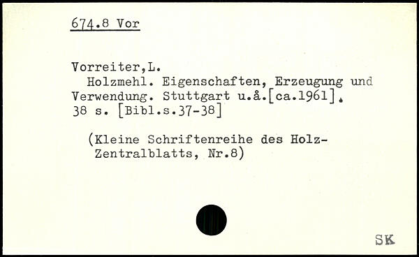 Holzmehl. Eigenschaften, Erzeugung und Verwendung. Stuttgart u.ä.[ca.1961].