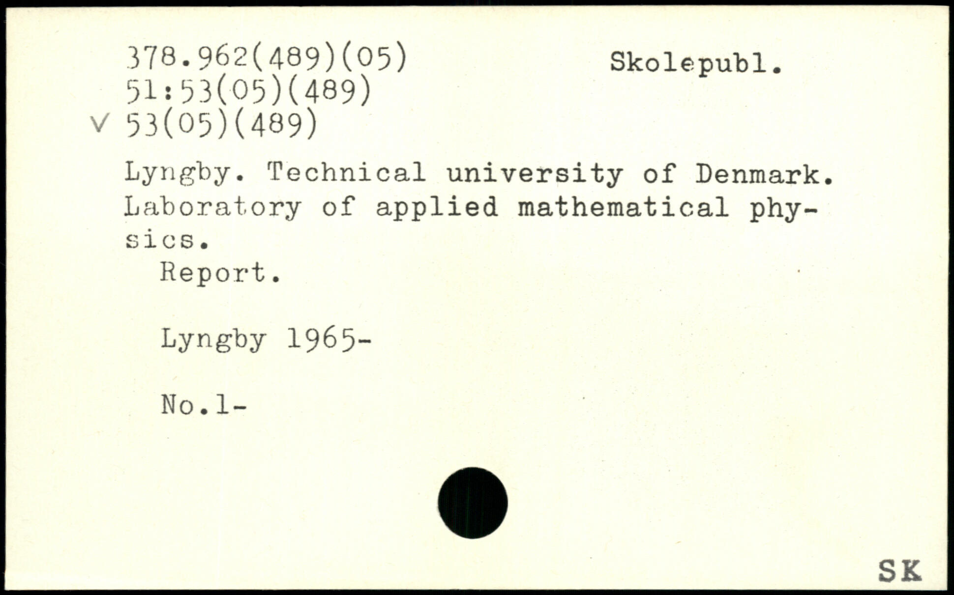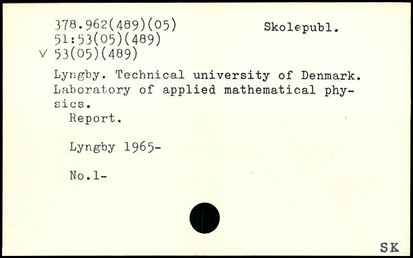 Lyngby. Technical university of Denmark. Laboratory of applied mathematical physics. Report. Lyngby 1965- No.1-
