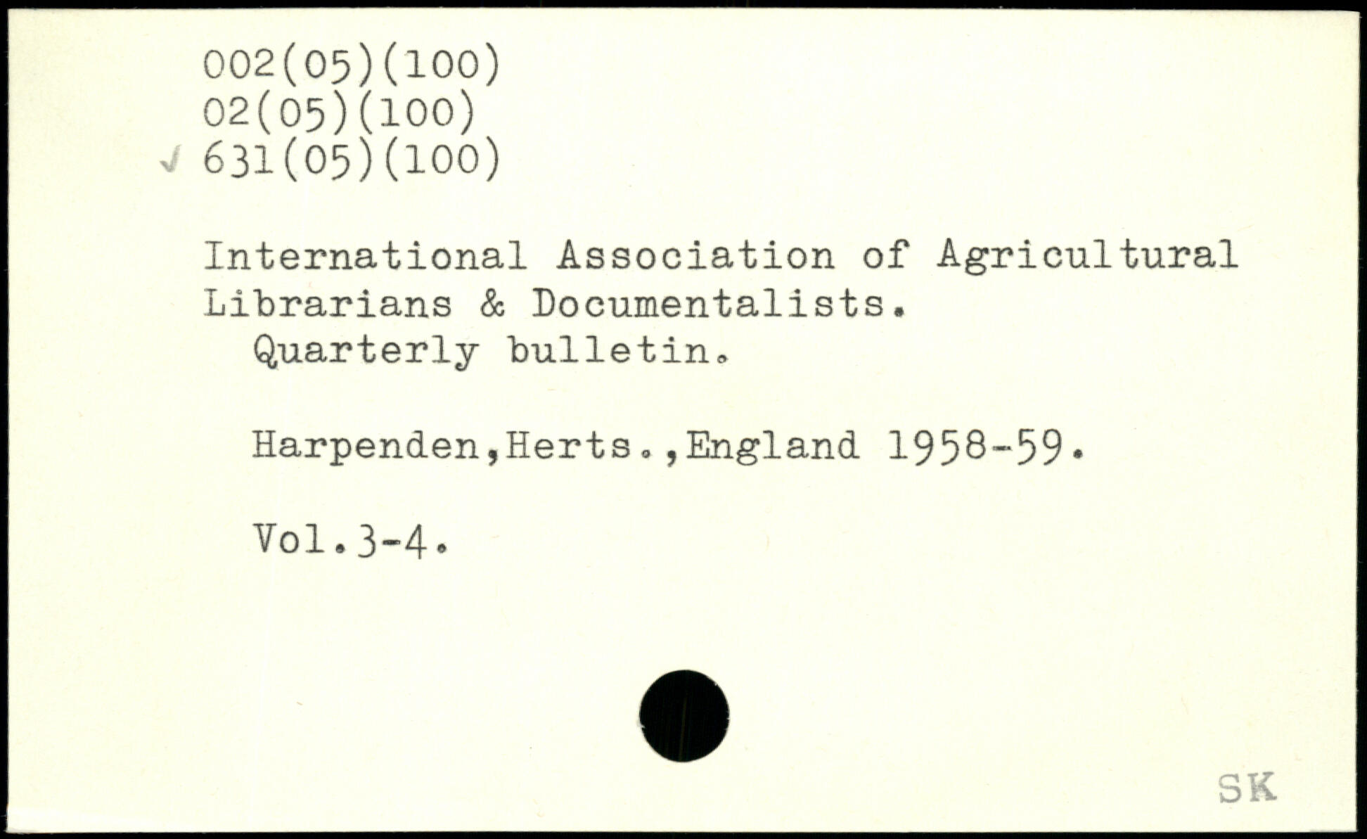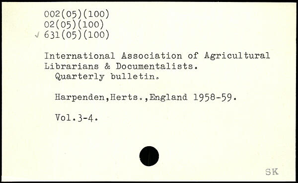 International Association of Agricultural Librarians & Documentalists. Quarterly bulletin, Harpenden,Herts,,England 1958-59,