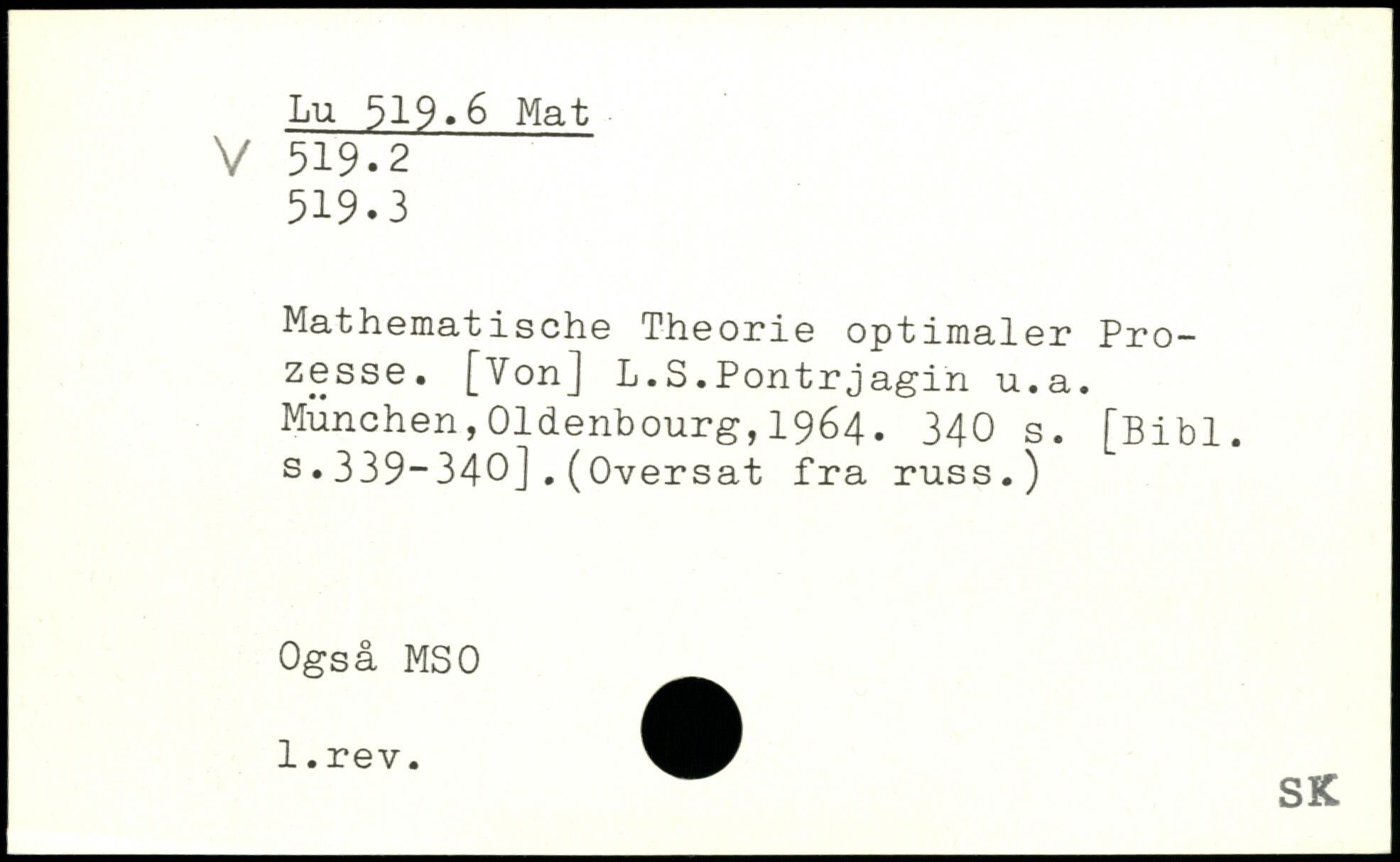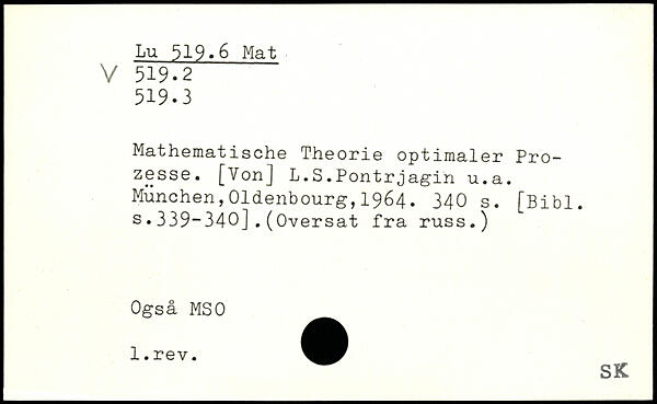 Mathematische Theorie optimaler Prozesse. [Von] L.S.Pontrjagin u.a.