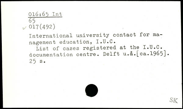 International university contact for management education, I.U.C. List of cases registered at the I.U.C. documentation centre. Delft u.a.[ca.19^5].