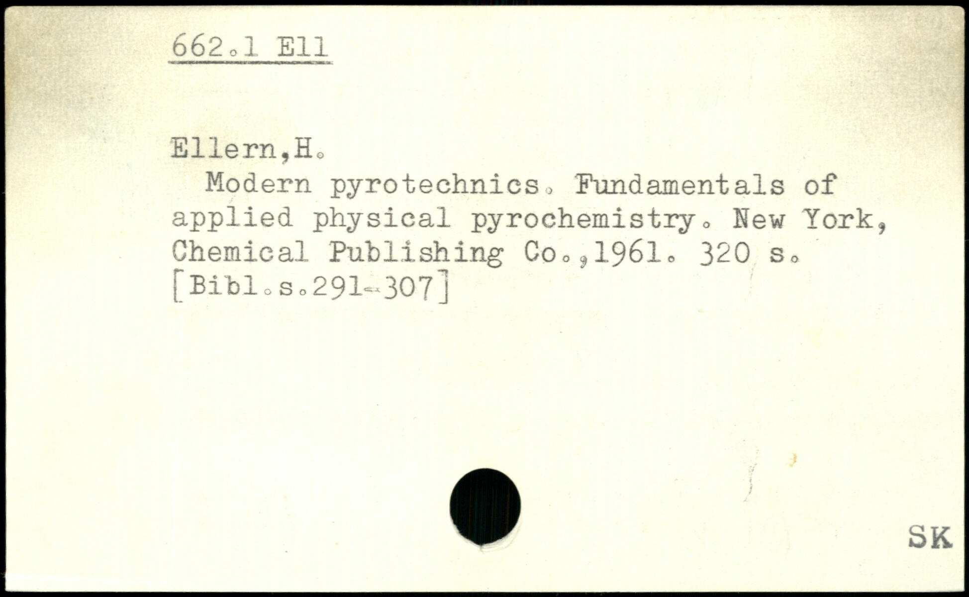 Modern pyrotechnics., fundamentals of applied physical pyrochemistry. New York, Chemical Publishing Co1961.