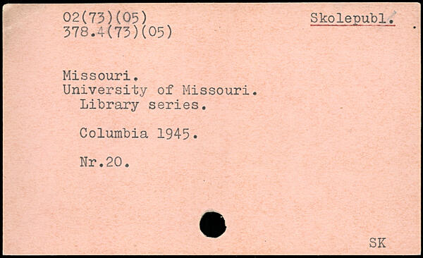 University of Missouri. Library series. Columbia 1945. Nr.20.