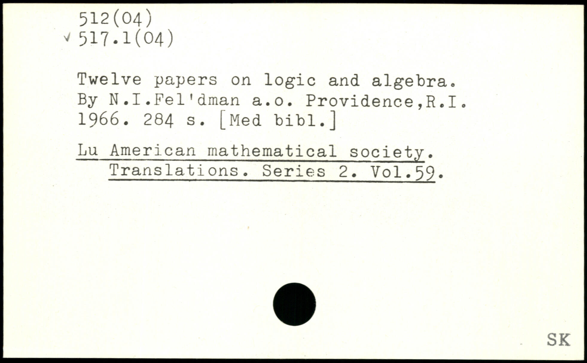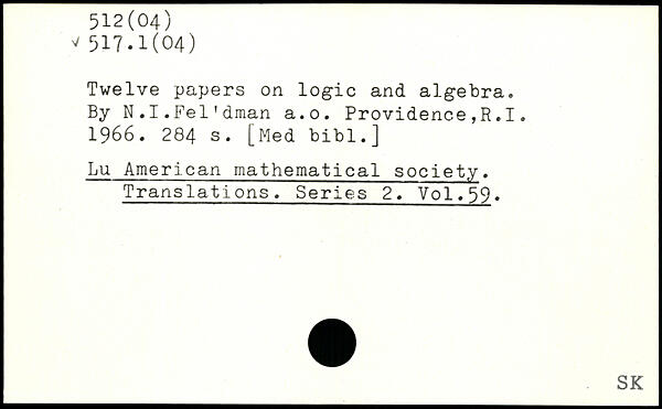 Twelve papers on logic and algebra. By N.I.Fel'dman a.o. Providence,R.I. 1966.