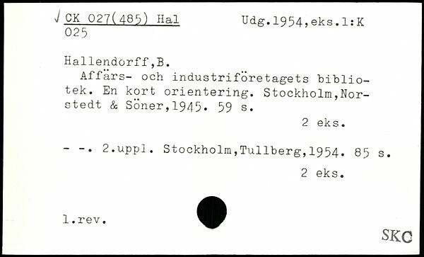 Affärs- och industriföretagets bibliotek. En kort orientering.