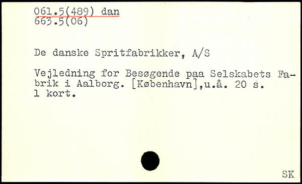 De danske Spritfabrikker, A/S Vejledning for Besøgende paa Selskabets Fabrik i Aalborg.
