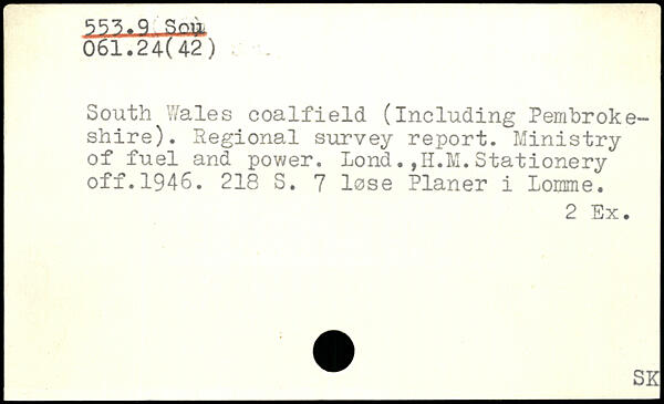 South Wales coalfield (Including Pembrokeshire). Regional survey report. Ministry of fuel and power. Lond.,H.M.Stationery off.1946.