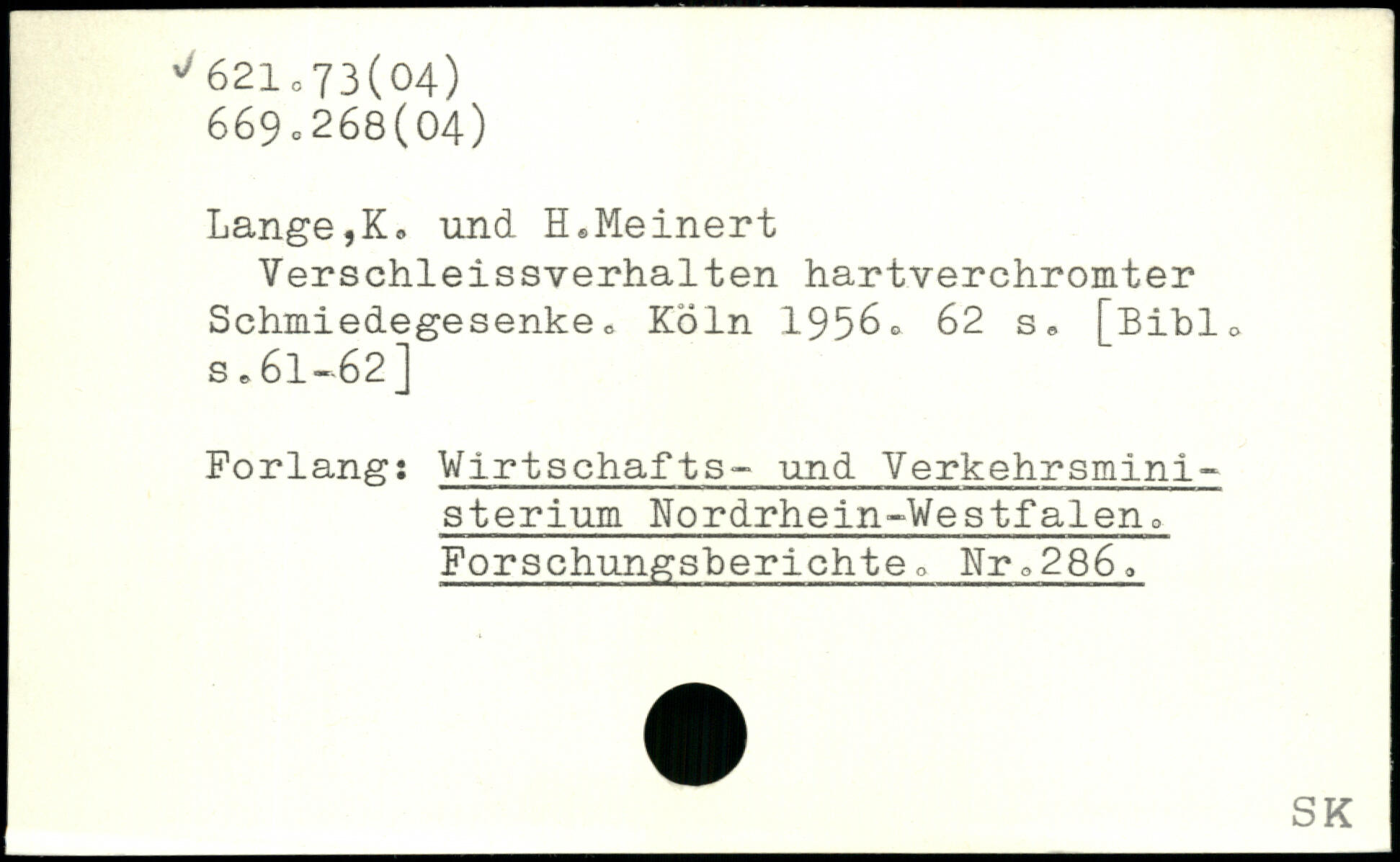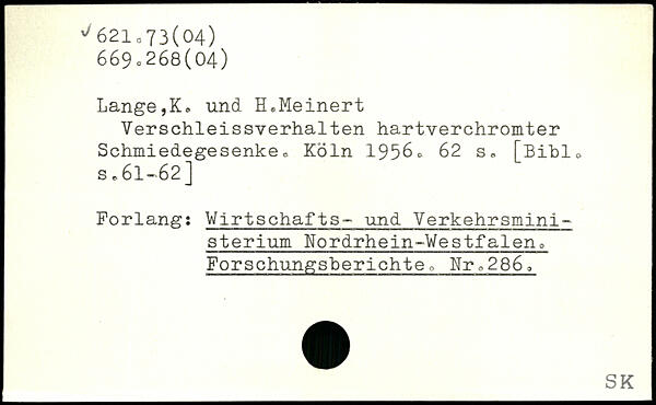 Lange,K. und H,Meinert Verschleissverhalten hartverchromter Schmiedegesenke