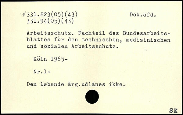 Arbeitsschutz. Fachteil des Bundesarbeitsblattes für den technischen, medizinischen und sozialen Arbeitsschutz.