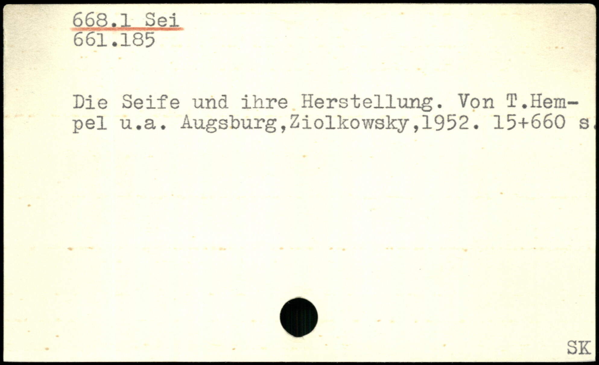 Die Seife und ihre Herstellung. Von T.Hem-pel u.a.