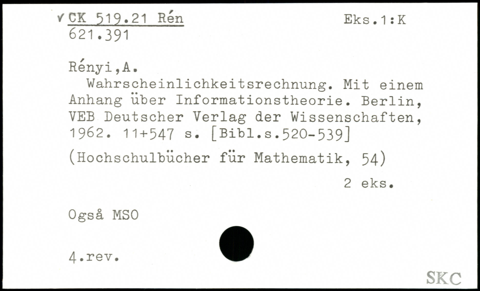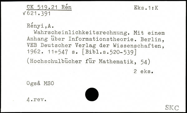 Wahrscheinlichkeitsrechnung. Mit einem Anhang über Informationstheorie. Berlin, VEB Deutscher Verlag der Wissenschaften, 1962.