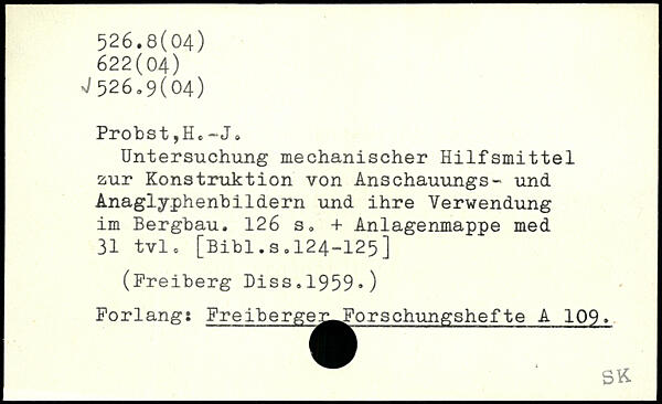 Probst,He-J. Untersuchung mechanischer Hilfsmittel zur Konstruktion von Anschauungs- und Anagiyphenbildern und ihre Verwendung im Bergbau.